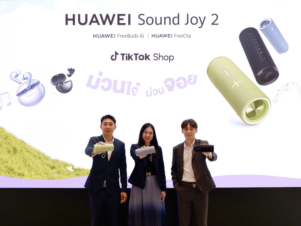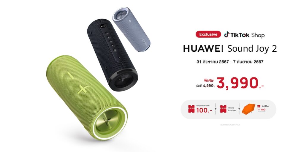 หัวเว่ย คอนซูมเมอร์ บิสสิเนส กรุ๊ป (ประเทศไทย) จับมือ TikTok Shop ทำตลาด HUAWEI Sound Joy 2 ลำโพงเสียงกระหึ่มด้วยลำโพง 4 ดอกให้ดังสะใจ กันละอองนํ้าและฝุ่น IP67 ใช้งานต่อเนื่อง 26 ชั่วโมง พร้อมจัดโปรโมชันเอ็กซ์คลูซีฟเฉพาะที่ร้านค้าของหัวเว่ยบน TikTok Shop ในราคา 3,990 บาท