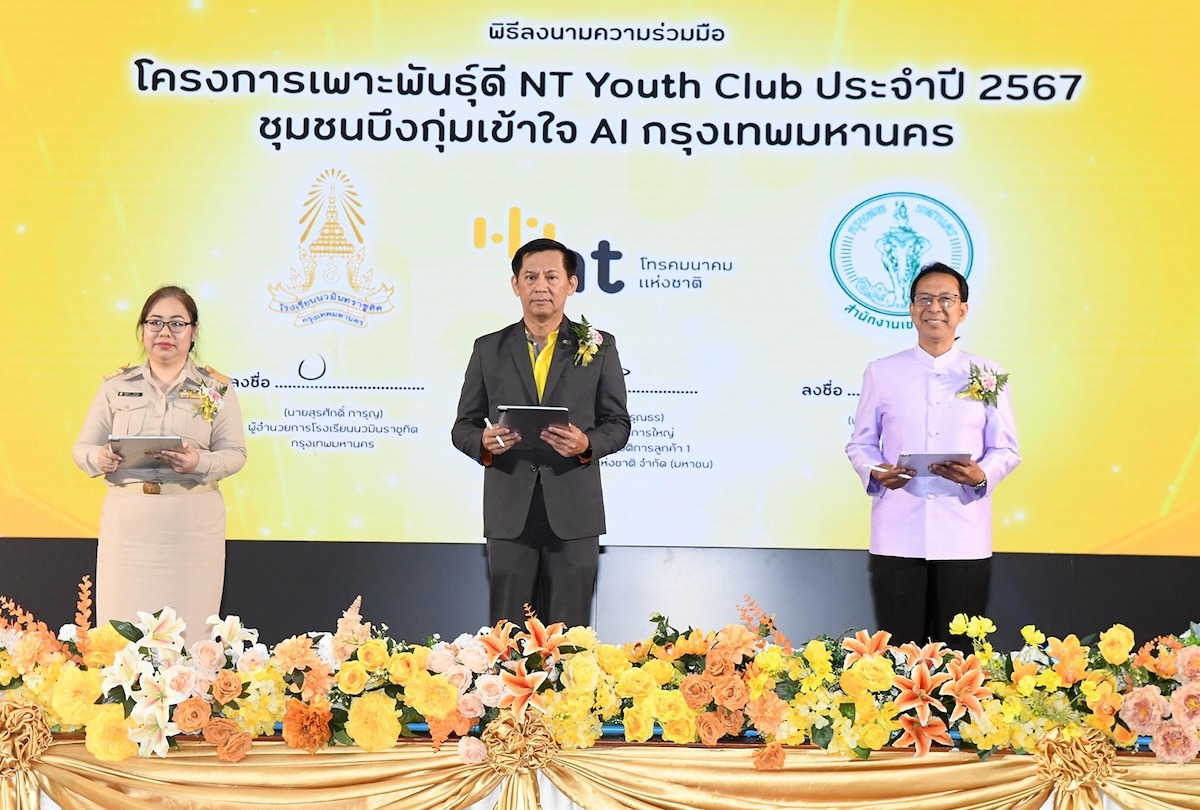 สมยศ ธนพิรุณธร รองกรรมการผู้จัดการใหญ่สายงานขายและปฏิบัติการลูกค้า 1 NT กล่าวว่า NT ตระหนักถึงความสำคัญของการให้บริการโทรคมนาคมและดิจิทัลเพื่อสังคมอย่างทั่วถึงแก่ประชาชน ภาครัฐ ภาคธุรกิจ และอุตสาหกรรมต่างๆ รวมถึงการให้ความสำคัญกับกิจกรรมด้านความรับผิดชอบต่อสังคมและสิ่งแวดล้อม โดย NT ได้ดำเนินการเสริมสร้างความเข้มแข็งให้กับชุมชนโดยจัดกิจกรรมโครงการเพาะพันธุ์ดี NT Youth Club เพื่อขับเคลื่อนเศรษฐกิจและสังคมดิจิทัลอย่างยั่งยืน ส่งเสริมการใช้เทคโนโลยีดิจิทัลและเทคโนโลยี IoT ให้เกิดประโยชน์ต่อเยาวชน/ชุมชนในปี 2567 ได้ดำเนินการโครงการเพาะพันธุ์ดี NT Youth Club ครบตามเป้าหมายในวันนี้ โดยมีชุมชนในโครงการทั้ง 77 จังหวัดทั่วประเทศรวม 85 แห่ง สำหรับชุมชนบึงกุ่มเข้าใจ AI กรุงเทพมหานคร เป็นชุมชนในลำดับที่ 85