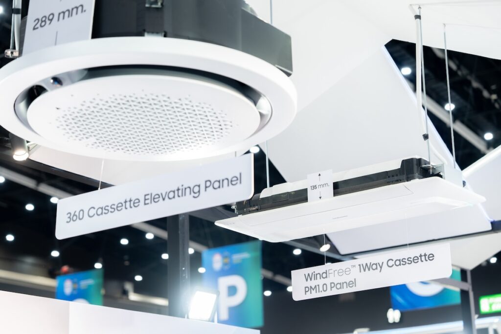 ภายในงานซัมซุงในฐานะผู้นำด้าน AirCare Solution ยังยกขบวนกลุ่มสินค้าและโซลูชันเครื่องปรับอากาศมาแบบครบครัน ทั้งกลุ่มสินค้า DVM Chiller FJM ERV Indoor units เครื่องปรับอากาศภายในบ้านและแบบฝังฝ้า และกลุ่มรีโมทคอนโทรลแบบครบครัน พร้อมนำเสนอแนวคิดใหม่ของเครื่องปรับอากาศ “แอร์ดี ต้องดีกว่าแค่เย็น” ด้วยการสร้างนิยามใหม่ของเครื่องปรับอากาศที่เป็นมากกว่าการให้ความเย็น แต่ยังรวมถึงความฉลาด สะดวกสบาย และยั่งยืน
