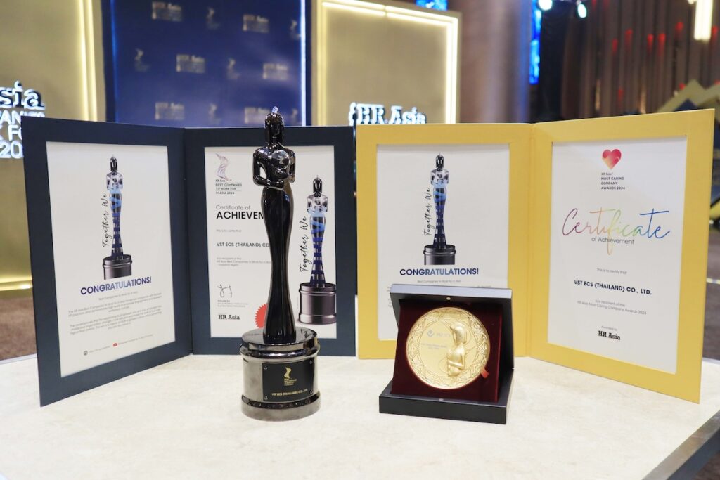 โดยในปี 2024 วีเอสที อีซีเอส (ประเทศไทย)ได้ 2 รางวัลใหญ่จากเวที HR ASIA ได้แก่ HR Asia Best Companies to Work for in Asia Thailand 2024 เป็นรางวัลเชิดชูองค์กรที่มีความเป็นเลิศด้านการบริหารจัดการทรัพยากรบุคคลระดับสากล เป็นองค์กรที่น่าทำงานด้วยโดยอ้างอิงจากแบบสำรวจจากพนักงานโดยตรงมีการบริหารจัดการด้านทรัพยากรบุคคลที่ดีเยี่ยม และมีวัฒนธรรมองค์กรที่แข็งแรง เปิดโอกาสให้บุคลากรได้พัฒนาศักยภาพ พนักงานมีความผูกพันและมีส่วนร่วมสูงและพร้อมรางวัลพิเศษ Most Caring Companies Awards 2024 ที่สะท้อนให้เห็นถึงการดูแลใส่ใจพนักงานอย่างดีและการมอบสวัสดิการที่ครอบคลุมทั้งร่างกาย จิตใจ และการเติบโต ซึ่งทั้ง 2 รางวัลที่ได้รับจาก HR Asia ในปีนี้ถือเป็นรางวัลที่น่าภาคภูมิใจและเป็นเครื่องยืนยันความสำเร็จของ วีเอสที อีซีเอส (ประเทศไทย)