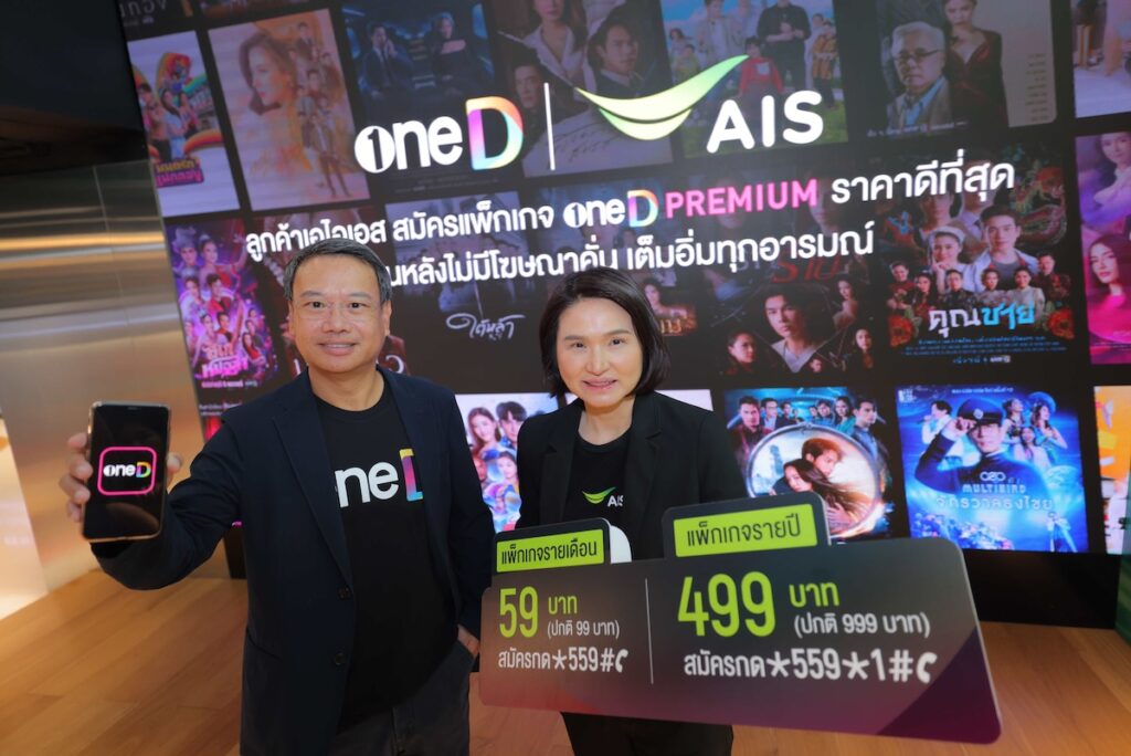 AIS ผนึกความร่วมมือกับ เดอะ วัน เอ็นเตอร์ไพรส์ จำกัด(มหาชน) ด้วยบริการ “oneD” แอปพลิเคชันที่รวบรวมคอนเทนต์คุณภาพหลากหลายทั้ง ละคร, ซีรีส์, ซิทคอม, คอนเสิร์ต, ละครเวที แบบจัดเต็มจาก one31, oneD ORIGINAL, GMMTV, CHANGE2561, GMM GRAMMY และ GMM MUSIC มาให้ลูกค้า AIS ทั้งมือถือและเน็ตบ้านได้รับความพิเศษและคุ้มค่ามากสุดกับแพ็กเกจ oneD PREMIUM ในราคาเพียง 59 บาทต่อเดือน จากปกติ 99 บาท เพียงกด *559# แล้วโทรออก หรือจ่ายเหมาแบบรายปีเพียง 499 บาทต่อปี จากปกติ 999 บาท เพียงกด *559*1# แล้วโทรออก