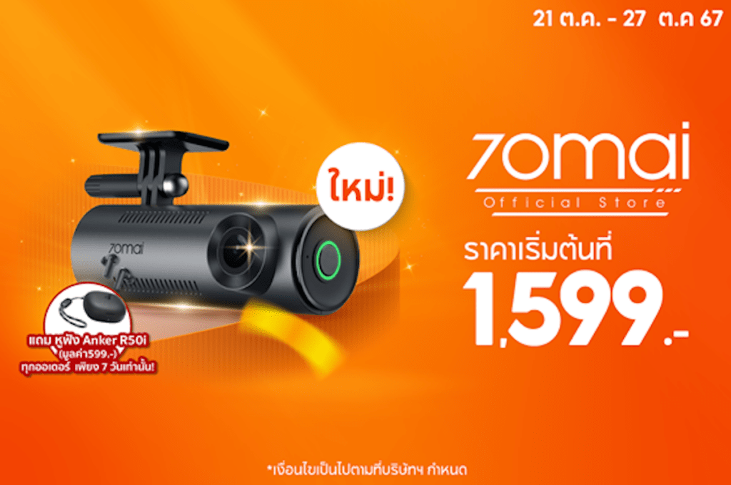 70mai มุ่งมั่นที่จะเป็นผู้นำนวัตกรรมอัจฉริยะที่ทำให้ทุกการเดินทางของคุณง่ายขึ้น สำหรับผู้ที่เพิ่งเริ่มใช้กล้องติดรถยนต์ รุ่น M310 ซึ่งมีขนาดกะทัดรัด เชื่อถือได้ และใช้งานง่าย ถือเป็นตัวเลือกที่ไม่ควรพลาด ซึ่งจัดหน่ายในราคาเพียง 1,599 บาท จากปกติ 2,589 บาท (ลดสูงสุด 40%) แถมฟรี! หูฟัง Anker R50i มูลค่า 599.- ทุกการสั่งซื้อ เปิดตัวก่อนใคร พร้อมให้ช้อปแล้วเฉพาะที่ Shopee ตั้งแต่วันที่ 21 – 27 ต.ค. 2024 เท่านั้น
