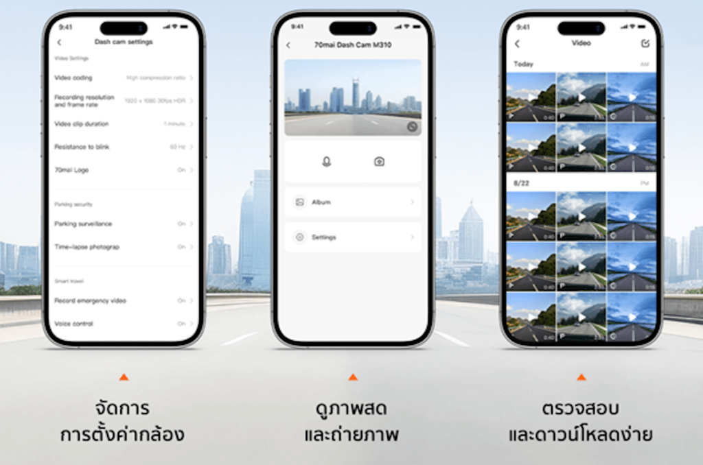 กล้องติดรถยนต์ M310 มีฟังก์ชันโต้ตอบอัจฉริยะ จึงมอบประสบการณ์การขับขี่ที่สะดวกและปลอดภัยยิ่งขึ้นให้กับคุณ ประการแรก การควบคุมด้วยเสียงช่วยให้คุณใช้การตั้งค่าต่างๆ ได้อย่างง่ายดายโดยไม่ต้องดำเนินการด้วยตนเอง ทำให้ขับขี่ได้อย่างไร้กังวล ประการที่สอง การเชื่อมต่อกับ Wi-Fi ในตัวกล้องติดรถยนต์ และการควบคุมผ่านแอป “70mai” ช่วยให้คุณสามารถดูภาพแบบเรียลไทม์ ถ่ายภาพ และดาวน์โหลดรูปภาพและวิดีโอได้อย่างง่ายดายจากเพียงปลายนิ้วสัมผัส