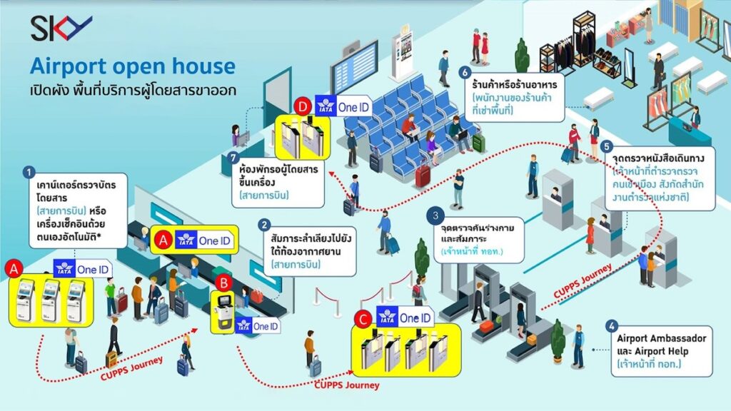 ที่ผ่านมา SKY ในฐานะผู้พัฒนาระบบด้านเทคโนโลยีเพื่ออำนวยความสะดวกให้แก่นักเดินทางภาคพื้นดิน ได้พัฒนาระบบบริการผู้โดยสารก่อนขึ้นเครื่องหรือ CUPPS (Common Use Passenger Processing System) มาใช้ในสนามบินภายในประเทศไทย โดยระบบ CUPPS ที่ปัจจุบันดำเนินการเรียบร้อยแล้วประกอบด้วย CUTE (Common Use Terminal Equipment) ระบบออกตั๋วโดยสารที่เคาน์เตอร์, CUSS (Common Use Self-check in System) ระบบออกตั๋วโดยสารด้วยตัวเอง, CUBD (Common Use Bag Drop) ระบบโหลดกระเป๋าสัมภาระอัตโนมัติด้วยตัวเอง, PVS (Passenger Validation System) ระบบการคัดกรองผู้โดยสาร, SBG (Self-Boarding Gate) ระบบประตูทางออกขึ้นเครื่องอัตโนมัติ และล่าสุด คือ ระบบ Biometric หรือ One-ID ซึ่งทั้ง 6 ระบบ ที่ถูกพัฒนาขึ้น SKY มั่นใจว่าจะสามารถทำให้ประเทศไทยก้าวเข้าสู่ Touchless Society ตั้งแต่ก้าวแรกที่นักท่องเที่ยวได้สัมผัสประเทศไทย ซึ่งเป็นประตูด่านหน้าก่อนเดินทางเข้าประเทศ และเป็นจุดเริ่มต้นที่ดี ที่จะทำให้นักท่องเที่ยวได้รู้สึกถึงความสะดวกสบายในการเดินทางมากยิ่งขึ้น เพื่อให้ตรงเป้าหมายที่ SKY ช่วยในการพัฒนาประเทศในช่วงเปลี่ยนผ่านจาก New Normal สู่ Now Normal เพื่อให้ผู้เดินทางได้เดินทางอย่างปลอดภัย และสะดวกสบาย (Save, Secure and Convenience)