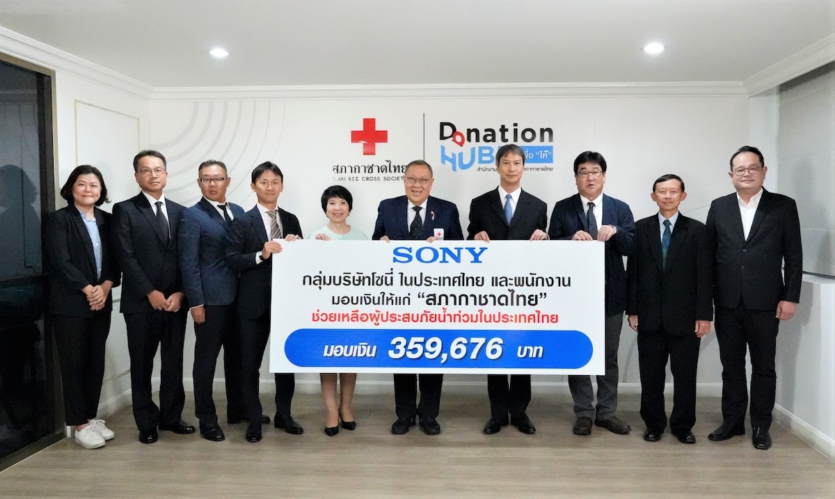 ในการนี้ กลุ่มบริษัทโซนี่ในประเทศไทย และพนักงาน ได้ร่วมบริจาคเงินจำนวน 359,676 บาท ให้แก่สภากาชาดไทย เพื่อสมทบทุนช่วยเหลือผู้ประสบอุทกภัยทั้งในพื้นที่ภาคเหนือ และในพื้นที่อื่นๆ ของประเทศไทย เพื่อช่วยเหลือบรรเทาความเดือดร้อนของผู้ประสบอุทกภัยดังกล่าว นำโดย มร. เรียว อาเมมิยะ กรรมการผู้จัดการ บริษัท โซนี่ เทคโนโลยี (ประเทศไทย) จำกัด (ที่ 4 จากขวา) มร. ทาเคชิ มะสึดะ กรรมการผู้จัดการบริษัท โซนี่ ดีไวซ์ เทคโนโลยี (ประเทศไทย) จำกัด (ที่ 3 จากขวา) มร. โยจิโระ อาซาอิ กรรมการผู้จัดการ บริษัท โซนี่ ไทย จำกัด (ที่ 4 จากซ้าย) พร้อมด้วยผู้บริหารระดับสูงของกลุ่ม บริษัทโซนี่ในประเทศไทย ร่วมมอบเงินให้แก่ นายขรรค์ ประจวบเหมาะ ผู้อำนวยการสำนักงานจัดหารายได้ (ที่ 5 จากขวา) และนางจันทร์ประภา วิชิตชลชัย รองผู้อำนวยการสำนักงานจัดหารายได้ สภากาชาดไทย (ที่ 5 จากซ้าย)ณ สำนักงานจัดหารายได้ Donation HUB “รับ” เพื่อ “ให้” สภากาชาดไทย เมื่อเร็วๆนี้