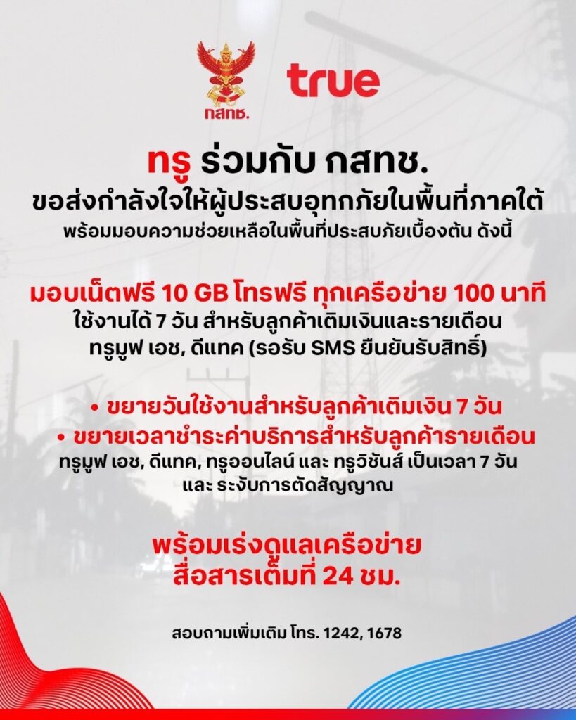 มาตรการช่วยเหลือลูกค้าภาคใต้จากทรู คอร์ปอเรชั่น