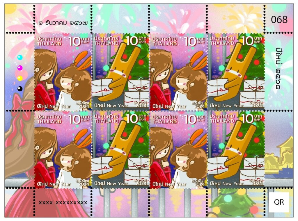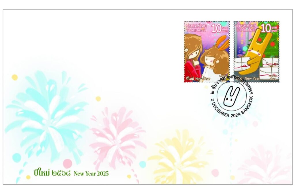 ไปรษณีย์ไทย ชวนเตรียมตัวเคาท์ดาวน์ ต้อนรับศักราชใหม่ปี 2568 พร้อมส่งความสุขในบรรยากาศแห่งการเฉลิมฉลองบนดวงแสตมป์ชุดปีใหม่ 2568 ภายใต้คอนเซปต์ “Memories on the Rooftop” ถ่ายทอดบรรยากาศเฟสทีฟในคืนเคาท์ดาวน์ผ่านท้องฟ้าด้านบนของวัดอรุณราชวราราม มีเด็กหญิงหูยาวยืนมองทิวทัศน์วัดอรุณในยามค่ำคืน ฉากหลังเป็นพลุฉลองปีใหม่และมี“เมลโล่”กระต่ายน้อยแกะกล่องพัสดุอยู่ข้างๆ โดยจำหน่ายราคาดวงละ 10 บาท(เต็มแผ่น 8 ดวง) แผ่นชีตที่ระลึกราคา 40 บาท ซองวันแรกจำหน่ายราคา 34 บาท เริ่มจำหน่ายตั้งแต่ 2 ธ.ค. 2567 ที่ไปรษณีย์ในกรุงเทพ ไปรษณีย์ประจำจังหวัด พิพิธภัณฑ์แสตมป์ไทย (BTS สะพานควาย) และทางออนไลน์ผ่านเว็บไซต์หรือแอปพลิเคชัน Thailandpostmart