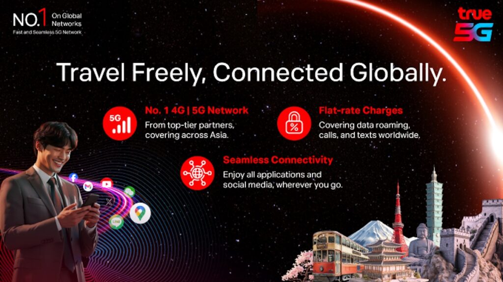 ทรู คอร์ปอเรชั่น เปิดประสบการณ์ใหม่เอาใจนักเดินทางทั่วโลกกับ “GO World” ซิมเดียวใช้งานได้รอบโลก เอาใจกลุ่มคนที่เดินทางหลายประเทศทั่วโลกบ่อยครั้งและพำนักในต่างประเทศเป็นเวลานาน ชูจุดเด่นที่แตกต่างจากซิมโรมมิ่งทั่วไป คือ ค่าบริการแบบคงที่ หรือ one flat rate ใช้งานได้นานถึง 30 วัน พร้อมบริการเสริมยกระดับประสบการณ์เดินทางไปต่างประเทศ ทั้ง บริการโรมมิ่งบนเครื่องบิน-เรือสำราญ (In-flight & On-cruise Roaming)และสิทธิพิเศษจากพาร์ทเนอร์ระดับโลก (Global Privilege)ใช้งานง่าย ให้บริการทั้งแบบ eSIM และซิมการ์ดปกติ นำร่องให้บริการในภูมิภาคเอเชียกับ 3 แพ็กเกจสุดคุ้มทั้ง เน็ต โทร และข้อความ พร้อมบริการเสริมและสิทธิพิเศษที่เหนือกว่ามั่นใจได้กับโรมมิ่งบนเครือข่ายพันธมิตรที่ดีที่สุดอันดับ 1 ในแต่ละประเทศที่ครอบคลุมมากที่สุดทั้งสัญญาณ 4G และ 5G กว่า 35 ประเทศในภูมิภาคเอเชีย