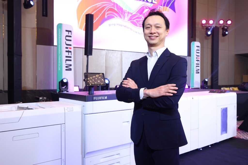 กิตติ พรพิพัฒน์วงศ์ Graphic Communication Head, Thailand บริษัท ฟูจิฟิล์ม บิสซิเนส อินโนเวชั่น (ประเทศไทย) จำกัด เน้นย้ำเรื่องพันธกิจ One GC : The Brand Of Choice โดยบริษัทฯเป็นพันธมิตรเพียงหนึ่งเดียวที่ครอบคลุมการพิมพ์แบบเดิมไปจนถึงการพิมพ์ดิจิทัลทั้งระบบ Toner และ Inkjet แบบไร้รอยต่อ การพัฒนาผลิตภัณฑ์ที่ล้ำสมัยต้องควบคู่กับการพัฒนาบุคลากรให้เป็นผู้เชี่ยวชาญตัวจริงเพื่อสนับสนุนธุรกิจของลูกค้าให้เติบโตพร้อมกันล่าสุดเปิดตัวเครื่องพิมพ์ดิจิทัลระดับโปรดักชันขนาดกลางรุ่นใหม่ในตระกูล Revoria Press จำนวน 4 รุ่นทั่วโลกและประเทศไทย ได้แก่ Revoria Press EC2100S และ Revoria Press SC285S ที่มาพร้อม หมึกพิมพ์สีพิเศษ ทำให้สามารถพิมพ์ 5 สีได้ในการพิมพ์ครั้งเดียว
