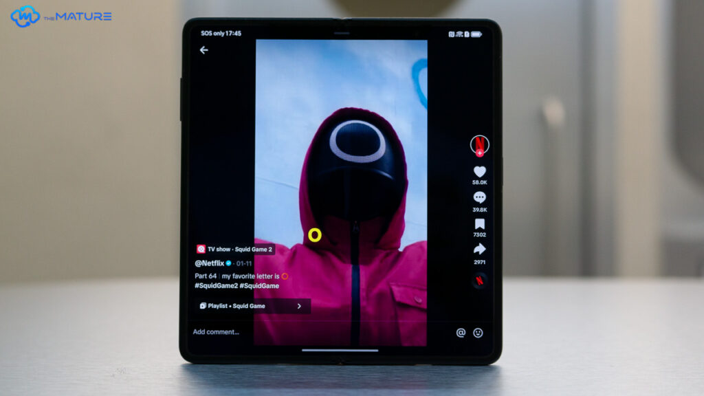 ถ้าต้องการนั่งเสพคอนเทนต์ ตรวจงาน คอมเมนต์งาน ก็สามารถกาง จอออกมาเป็น 7.92 นิ้ว ความละเอียด 2344 x 2156 พิกเซล ให้รีเฟรชเรทที่ 120Hz และความสว่างสูงสุด 1600 nits เหมือนพกแท็บเล็ตติดตัว ไม่ว่าจะดูสตรีมมิ่ง Netflix เช็กอีเมล หรือทำงานเอกสาร ทุกอย่างลื่นไหลและสบายตา รวมถึงการแบ่งหน้าจอ Split-Screen ให้ใช้งานแอปฯ ได้พร้อมกัน สามารถเปิดเบราวเซอร์หาข้อมูล พร้อมจดบันทึกได้ในจอเดียว