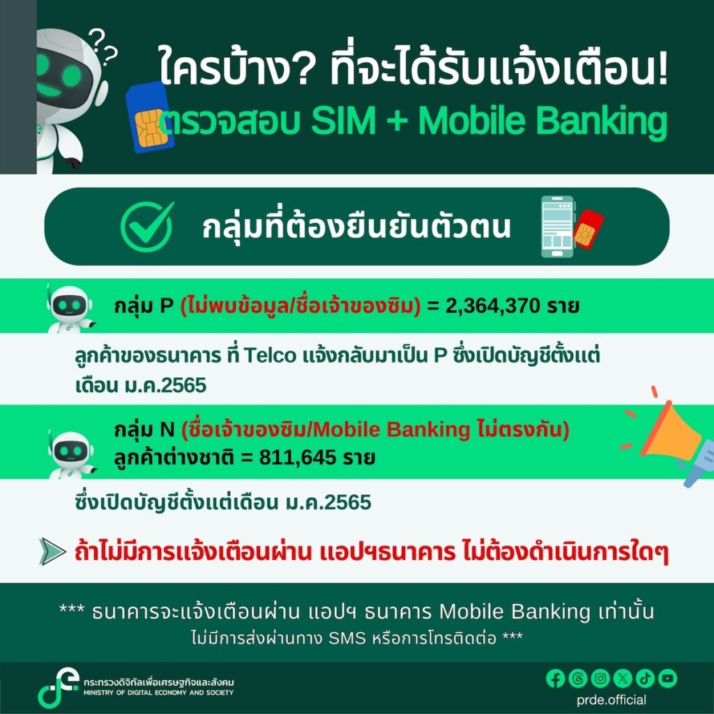 ประเสริฐ จันทรรวงทอง รองนายกรัฐมนตรีและรัฐมนตรีว่าการกระทรวงดิจิทัลเพื่อเศรษฐกิจและสังคม(ดีอี) กล่าวว่า จากกรณีที่กระทรวงดีอีได้ร่วมกับสำนักงานป้องกันและปราบปรามการฟอกเงิน (ปปง.) สำนักงานคณะกรรมการกิจการกระจายเสียง กิจการโทรทัศน์ และกิจการโทรคมนาคมแห่งชาติ (กสทช.) ธนาคารแห่งประเทศไทย (ธปท.) สมาคมธนาคารไทย และสมาคมโทรคมนาคมแห่งประเทศไทยในพระบรมราชูปถัมภ์ ดำเนินมาตรการ “การยกระดับความปลอดภัยในการใช้ Mobile Banking” ซึ่งเริ่มดำเนินมาตรการฯ ไปแล้วเมื่อวันที่ 1 กุมภาพันธ์ 2568 โดยการแจ้งเตือน “กลุ่มที่ต้องยืนยันตัวตน” ให้มายืนยันตัวตน ในระหว่างช่วงเวลาดังกล่าวจนถึงภายในวันที่ 30 เมษายน 2568