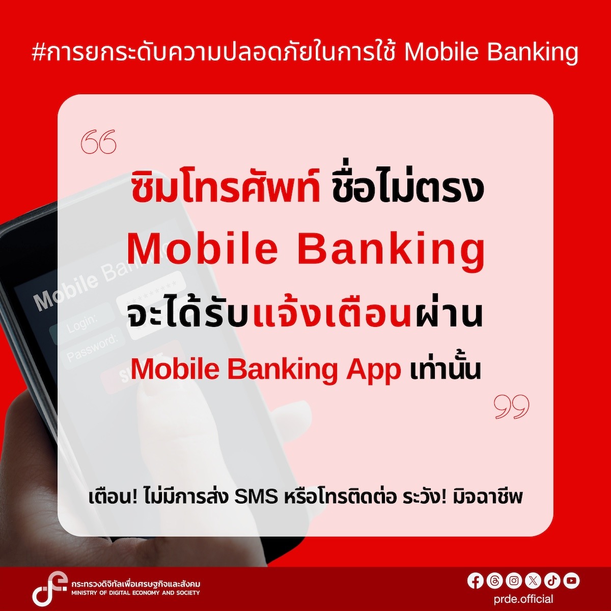 ดีอีย้ำมาตรการ “Mobile Banking” แจ้งเตือนประชาชนผ่านแอปฯ ธนาคารเท่านั้น “ไม่มีการโทร-ส่งข้อความ SMS”