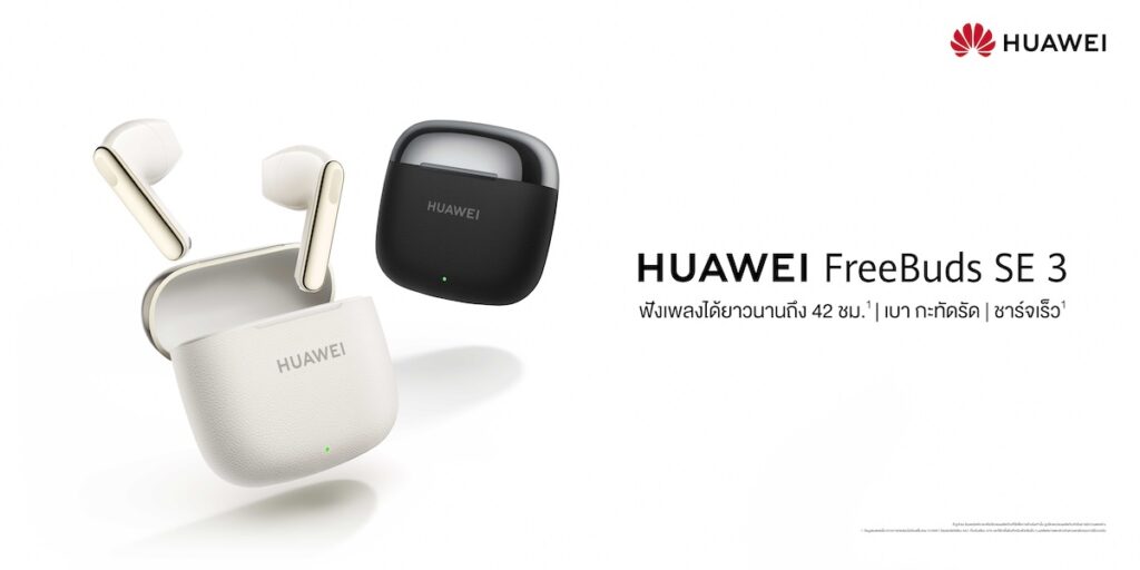 HUAWEI FreeBuds SE 3 ดีไซน์เมทัลลิกล้ำสมัย อายุการใช้งานแบตเตอรี่ยาวนานชาร์จครั้งเดียวใช้งานได้นานถึง 42 ชั่วโมง ชาร์จเร็วเพียง 10 นาที ฟังเพลงได้นานถึง 3 ชั่วโมง น้ำหนักเบาเพียง 3.8 กรัม คุณภาพเสียงชั้นเยี่ยม สวมใส่สบาย การเชื่อมต่อที่ลื่นไหล ราคาเพียง 799 บาท