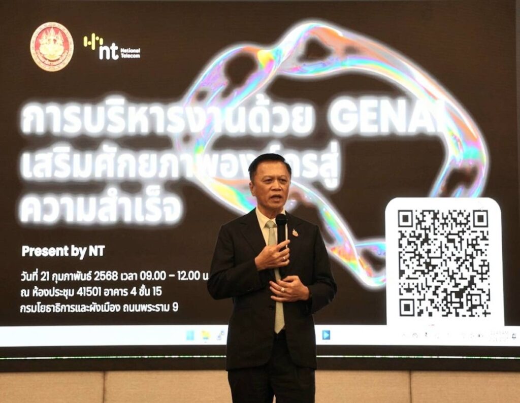 บริษัท โทรคมนาคมแห่งชาติ จำกัด(มหาชน) หรือ NT โดยดร.ยุทธศาสตร์ นิธิไพจิตร ผู้ช่วยกรรมการผู้จัดการใหญ่กลุ่มดิจิทัล พร้อมทีมเจ้าหน้าที่ผู้เชี่ยวชาญด้าน Big Data และ AI จัดการบรรยาย/workshop สำหรับผู้บริหารในหลักสูตร “การบริหารด้วย AI เสริมศักยภาพองค์กรสู่ความสำเร็จ”สร้างความรู้ความเข้าใจเกี่ยวกับการประยุกต์ใช้เทคโนโลยี AI เพื่อเพิ่มประสิทธิภาพการทำงานยุคดิจิทัลในภาครัฐ โดยมี พงษ์นรา เย็นยิ่ง อธิบดีกรมโยธาธิการและผังเมือง เป็นประธานและผู้บริหารในสังกัดกรมโยธาธิการฯ ทั่วประเทศเข้าร่วมอบรม ณ ห้องประชุม 51501 กรมโยธาธิการและผังเมือง ถนนพระราม 9