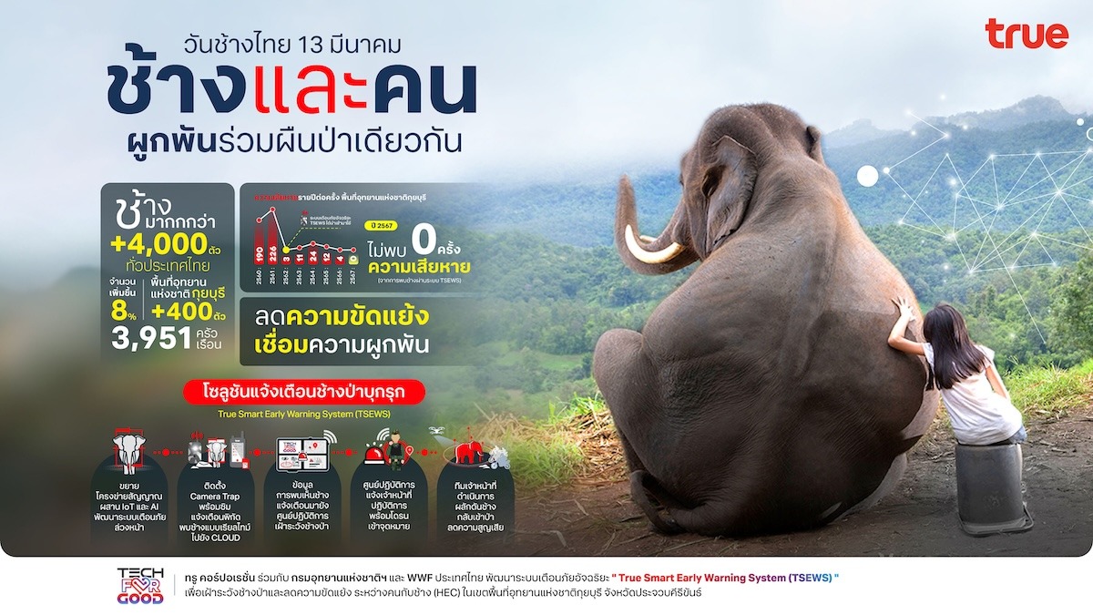 แน่นอนว่า แม้ความท้าทายในการอยู่ร่วมกันระหว่างคนกับช้างยังคงอยู่ แต่ด้วยความร่วมมือจากทรู คอร์ปอเรชั่น กรมอุทยานแห่งชาติ สัตว์ป่า และพันธุ์พืช และ WWF-ประเทศไทย ที่มุ่งมั่นสานต่อภารกิจนี้ ภาพแห่งความขัดแย้งจะค่อยๆ เลือนหาย แทนที่ด้วยสายใยแห่งความผูกพันอันยาวนานระหว่างคนไทยกับช้างป่า เพื่อให้ลูกหลานไทยได้สืบสานความภาคภูมิใจในสัตว์คู่บ้านคู่เมืองที่เป็นหนึ่งในสัญลักษณ์แห่งความยิ่งใหญ่ของชาติไทยตลอดไป