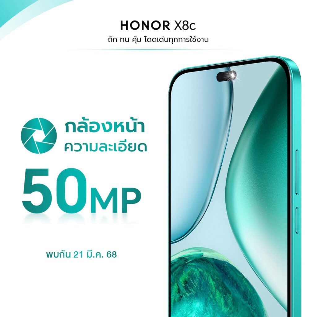 ออเนอร์ (HONOR) ผู้ให้บริการอุปกรณ์อัจฉริยะชั้นนำระดับโลก เตรียมเปิดตัวสมาร์ทโฟนรุ่นใหม่ล่าสุด HONOR X8c ที่มาพร้อมฟีเจอร์สุดล้ำ โดดเด่นทั้งด้านการถ่ายภาพ ความจุขนาดใหญ่ และดีไซน์สุดบางเบา ตอบโจทย์ทุกไลฟ์สไตล์ของผู้ใช้งาน สมาร์ทโฟนรุ่นนี้มาพร้อมกล้องหลังความละเอียดสูง 108MP พร้อม Ultra-clear Night Photograph รองรับการถ่ายภาพกลางคืนอย่างคมชัดและกล้องหน้าเซลฟี่50MPเสริมด้วย Selfie Light ช่วยให้การถ่ายเซลฟี่สวยงามในทุกสภาพแสงอีกทั้งยังมี AI Eraser เทคโนโลยีลบวัตถุที่ไม่ต้องการออกจากภาพได้ง่ายๆ เพียงปลายนิ้ว ตลอดจนพื้นที่การจัดเก็บเต็มพิกัด ความจุขนาดใหญ่พิเศษ 512GB สำหรับ HONOR X8c จะเปิดราคาในวันที่ 21 มีนาคม 2568 โดยวางจำหน่ายผ่านช่องทางออนไลน์เท่านั้น พร้อมโปรโมชันพิเศษสำหรับลูกค้าที่สั่งซื้อช่วงเปิดตัว