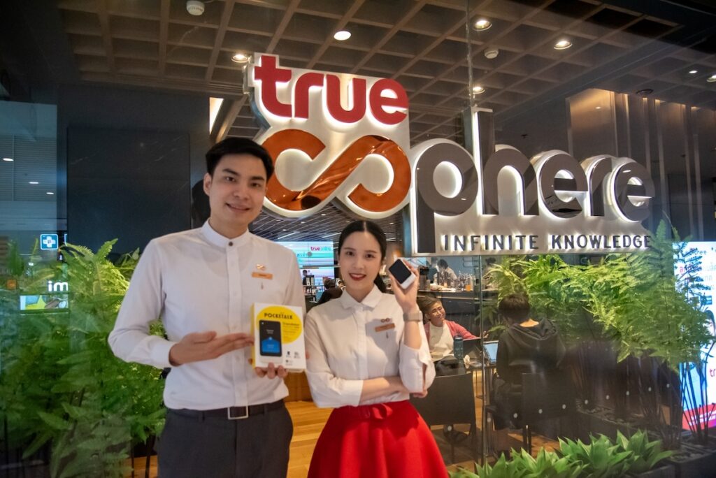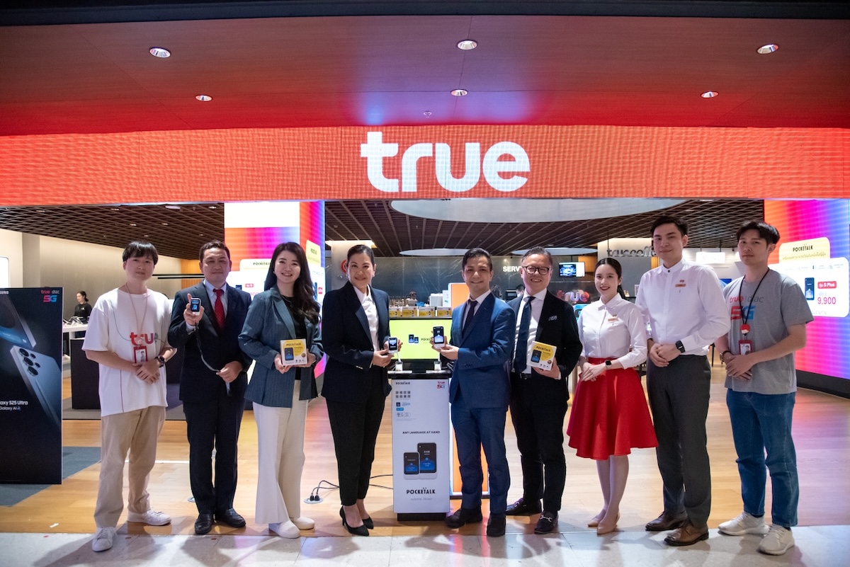 ทรู คอร์ปอเรชั่น โดยสุจิตรา อมิตรพ่าย (ที่ 4 จากซ้าย) หัวหน้าสายงานบริหารฝ่ายปฏิบัติการ ทรู รีเทลช็อป ร่วมกับ Pocketalk Corporation โดย มร.มาซาฮารุ วากายามะ (ที่ 5 จากขวา) ประธานกรรมการ Pocketalk Corporation ประเทศญี่ปุ่น ประกาศเปิดตัวการขายเครื่องแปลภาษาระบบ AI “Pocketalk” อันดับ 1 ของญี่ปุ่นในด้านการแปลภาษาหลายภาษาแบบเรียลไทม์ รองรับการแปลกว่า 85 ภาษา ที่มาพร้อมกับฟังก์ชันใช้งานที่สะดวก รวดเร็ว เหมาะสำหรับการใช้งานทั้งในชีวิตประจำวันและการเดินทาง โดยวางจำหน่ายเฉพาะที่ทรูช็อป 21 สาขาทั่วประเทศไทย