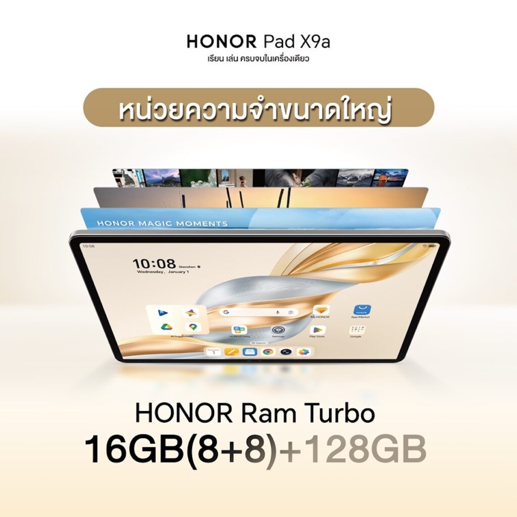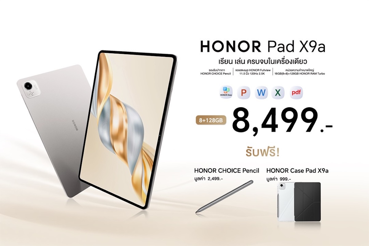 ออเนอร์ (HONOR) เดินหน้ารุกตลาดแท็บเล็ตต่อเนื่องเปิดตัว HONOR Pad X9a รุ่นใหม่ล่าสุดได้รับการอัปเกรดทั้งด้านดีไซน์และประสิทธิภาพ เพื่อตอบโจทย์ทุกไลฟ์สไตล์ ไม่ว่าจะเป็นการทำงาน การเรียน หรือความบันเทิง ด้วยฟีเจอร์ที่ให้ประสบการณ์เทียบเท่าพีซี รองรับการใช้งานร่วมกับปากกาอัจฉริยะ HONOR Choice Pencil เหมาะสำหรับการจดบันทึก การเขียน หรือครีเอทผลงานที่ต้องการความแม่นยำสูง ผสานหน้าจอถนอมสายตาขนาดใหญ่ 11.5 นิ้ว ความละเอียดระดับ 2.5K ที่ให้ภาพคมชัดเต็มตา อีกทั้งยังมาพร้อมพื้นที่จัดเก็บข้อมูลขนาดใหญ่จุใจ 16(8+8)+128GB รองรับการทำงานแบบมัลติทาสก์ได้อย่างราบรื่น เป็นเจ้าของ HONOR Pad X9a ในราคาคุ้มค่า 8,499 บาท