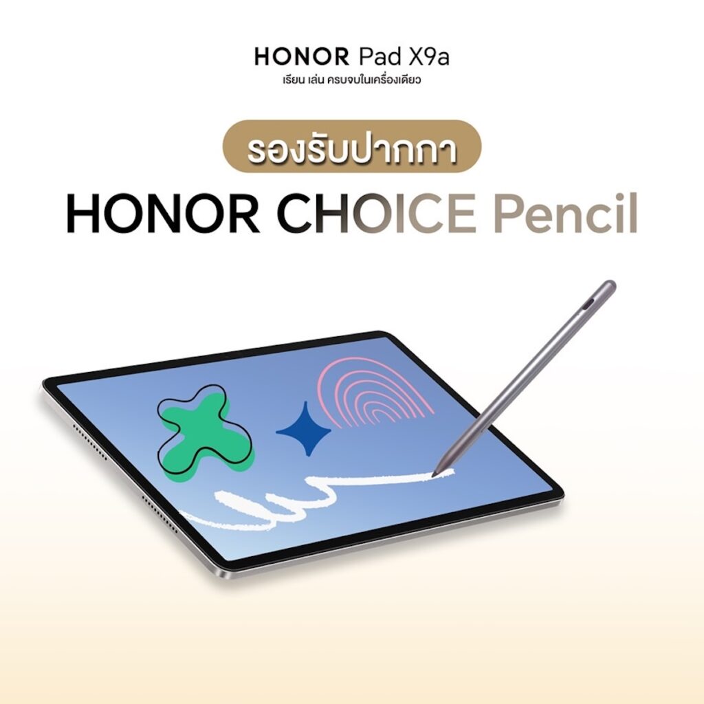 HONOR Pad X9a รองรับการใช้งานร่วมกับ HONOR CHOICE Pencil อย่างสมบูรณ์แบบ ด้วยเทคโนโลยีตรวจจับแรงกดถึง 4,096 ระดับ พร้อมการตอบสนองรวดเร็วและหน่วงต่ำ เสมือนเขียนบนกระดาษจริง โดยปากกามาพร้อมฟังก์ชันปุ่มลบในตัว สำหรับการแก้ไขงานได้อย่างสะดวกรวดเร็ว และฟีเจอร์ป้องกันการสัมผัสฝ่ามือ (Palm Rejection) ช่วยให้สามารถวางมือบนหน้าจอได้อย่างสบายๆ ขณะเขียนหรือวาดภาพ โดยสามารถเชื่อมต่อได้อย่างง่ายดายผ่านระบบป๊อปอัปอัตโนมัติ และ Bluetooth 5.1 ที่ให้สัญญาณเสถียรไม่มีสะดุด