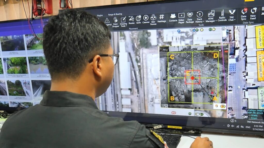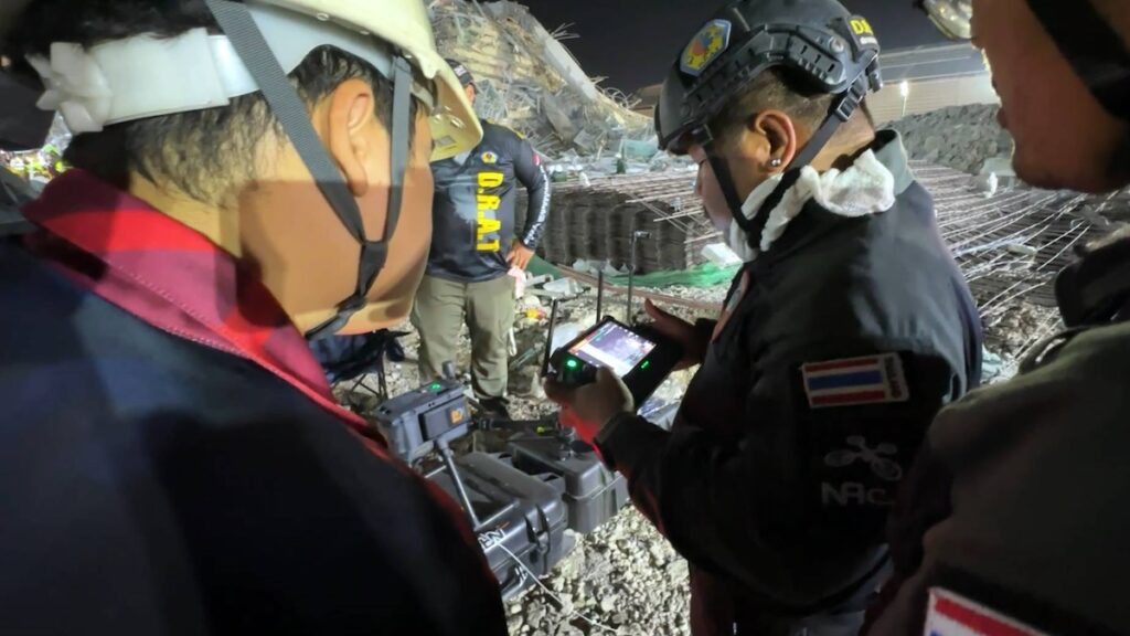 สิทธิพล คงยิ่งหาร หัวหน้าทีมปฏิบัติการสมาคม ตอบโต้ภัยพิบัติ (ประเทศไทย) กล่าวเสริมว่า เราใช้โดรนเพื่อมอนิเตอร์และประเมินสถานการณ์จากการสำรวจพื้นที่อันตรายหรือเข้าถึงยาก จึงจำเป็นต้องใช้อินเทอร์เน็ตเพื่อให้การถ่ายทอดภาพเป็นไปอย่างรวดเร็วและคมชัด ในช่วงที่อินเทอร์เน็ตมีปัญหา โชคดีที่ AIS เข้ามาช่วยกระจายสัญญาณอินเทอร์เน็ตความเร็วสูง ทำให้การควบคุมโดรนมีความแม่นยำมากขึ้น และสามารถนำข้อมูลต่างๆ มาผสานเทคโนโลยีการสร้างแผนที่ภาพ 3 มิติ เพื่อสแกนโครงสร้างตึกได้อย่างละเอียด รวดเร็ว เพื่อประเมินความปลอดภัยของการปฏิบัติภารกิจและความแม่นยำในการค้นหาผู้รอดชีวิต
