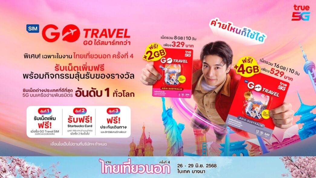 เที่ยวนอกสุดเอ็กซ์คลูซีฟ… ทรู คอร์ปอเรชั่น ผู้นำบริษัทโทรคมนาคม-เทคโนโลยีของไทย จับมือพี.เค. เอ็กซิบิชั่น ผู้จัดงานแสดงสินค้าด้านการท่องเที่ยว (Professional Exhibition Organizer) เสิร์ฟความคุ้มสุดเกินต้าน ในงานไทยเที่ยวนอก ครั้งที่ 4 ที่มาพร้อมคอนเซ็ปต์ “เที่ยววนไป” ส่ง GO Travel SIM ซิมโรมมิ่งตัวเลือกอันดับหนึ่งในใจนักเดินทาง เอาใจลูกค้า สายเที่ยว สายคอนเทนต์ ที่ไม่ว่าค่ายไหนก็ใช้ได้ ให้ท่องเที่ยวทั่วโลก แบบ GO ได้มากกว่า ด้วยโปรโมชั่นพิเศษสุดคุ้ม
