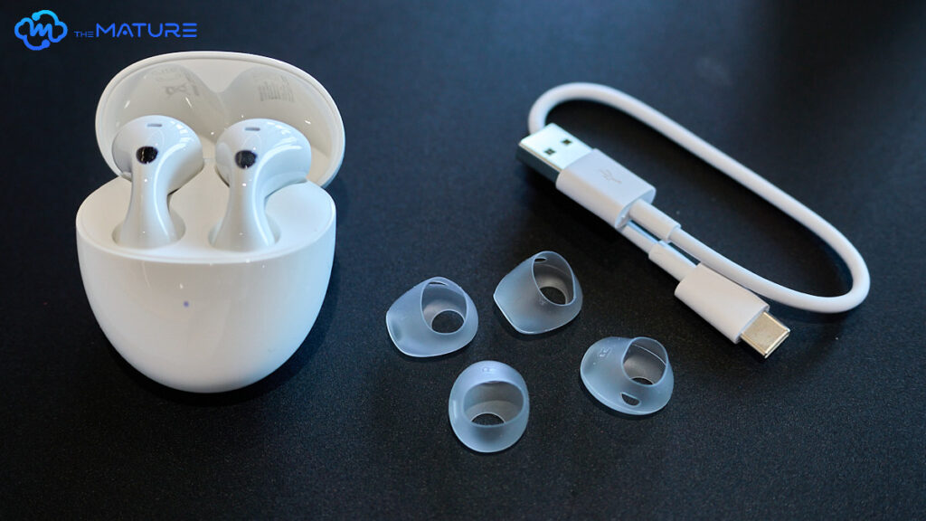 ที่เคสหูฟังจะมีพอร์ต USB-C สำเสียบชาร์จ และปุ่มกดด้านข้างสำหรับการเชื่อมต่อ อย่างการกดค้างเพื่อเข้าโหมด Pairing รองรับการเชื่อมต่อทั้ง iOS – Android และ HarmonyOS รวมถึงอุปกรณ์คอมพิวเตอร์ และแท็บเล็ตที่ใช้งานบลูทูธได้ด้วย