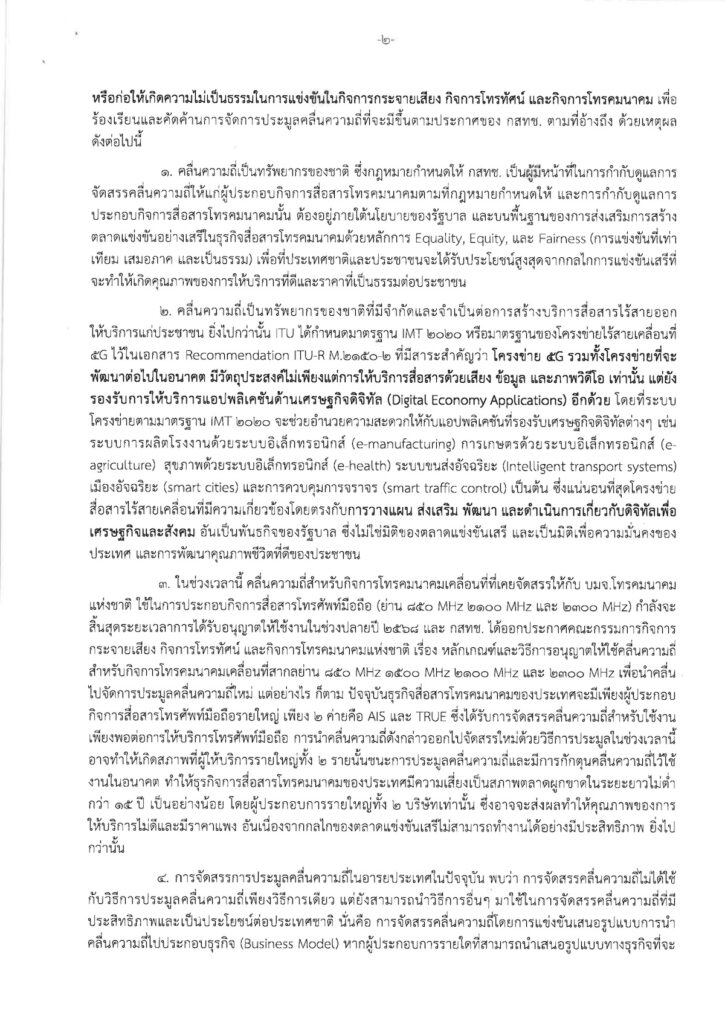 การประมูลใบอนุญาตคลื่นความถี่ที่จัดขึ้นโดย สำนักงาน กสทช. นับเป็นโอกาสสำคัญในการขับเคลื่อนอุตสาหกรรมโทรคมนาคมไทยสู่มิติใหม่ ทรู คอร์ปอเรชั่น มั่นใจว่าการประมูลคลื่นความถี่จะช่วยยกระดับการให้บริการทั้งเพื่อลูกค้าของทรูและดีแทค รวมถึงเพื่อประเทศชาติ และเป็นการสร้างรากฐานที่แข็งแกร่งสำหรับการพัฒนาเศรษฐกิจดิจิทัลของไทยในอนาคต