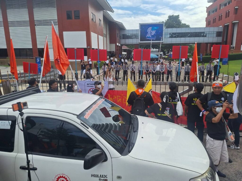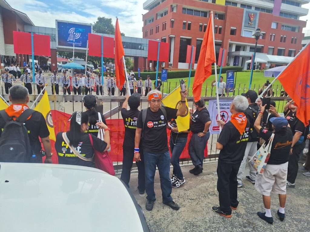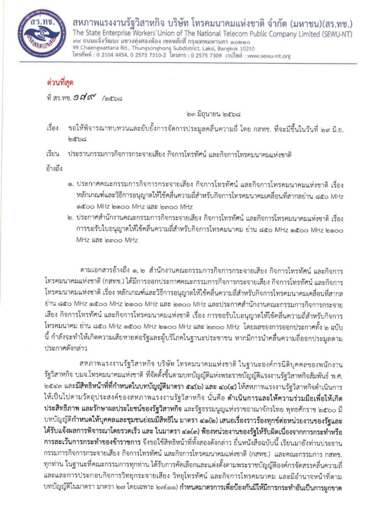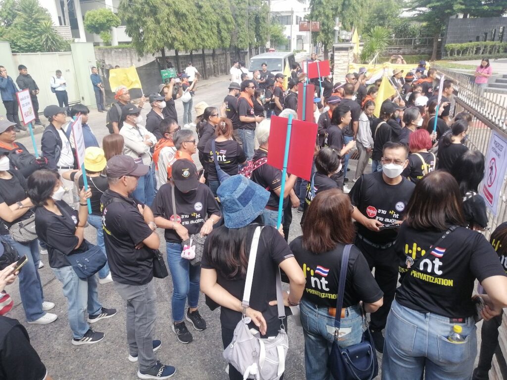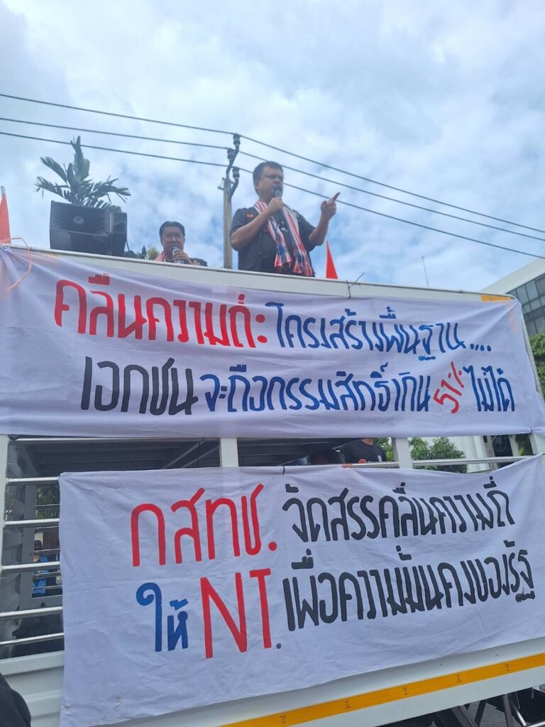 ในขณะที่กลุ่มที่คัดค้านการประมูลคลื่นครั้งนี้อย่างสหภาพฯ NT ทำได้แค่ยืนคัดค้านหน้าประตู !!