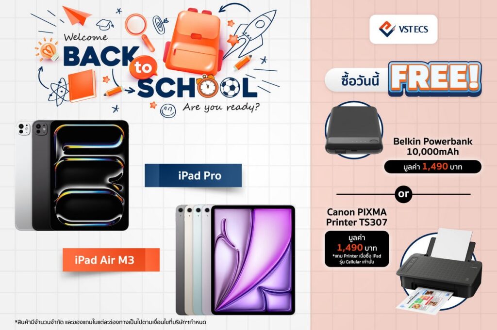 วีเอสที อีซีเอส (ประเทศไทย) จัดแคมเปญต้อนรับเปิดเทอม “Back to School 2025” จับมือ แคนนอน มาร์เก็ตติ้ง (ไทยแลนด์) และ เบลคิน มอบความคุ้มค่ามากกว่าใคร ให้กับนักเรียน นักศึกษา หรือผู้ที่ต้องการหาเครื่องมือเพื่อใช้ในการทำงาน เสริมความรู้ สร้างสรรค์การเรียน ตอบโจทย์วัยเรียน วัยทำงาน หรือเพื่อความบันเทิงแบบครบครัน เมื่อซื้อสินค้า Apple ที่ร่วมรายการ รับฟรี* Canon PIXMA TS307, พาวเวอร์แบงค์ Belkin หรือแท่นชาร์จเร็วไร้สาย จาก Belkin มูลค่ารวมสูงสุด 2,980 บาท ตั้งแต่วันที่ 4 – 20 กรกฎาคม 2568 หรือจนกว่าสินค้าจะหมด