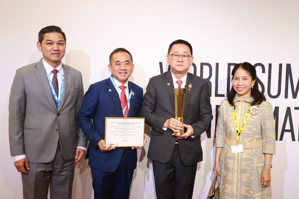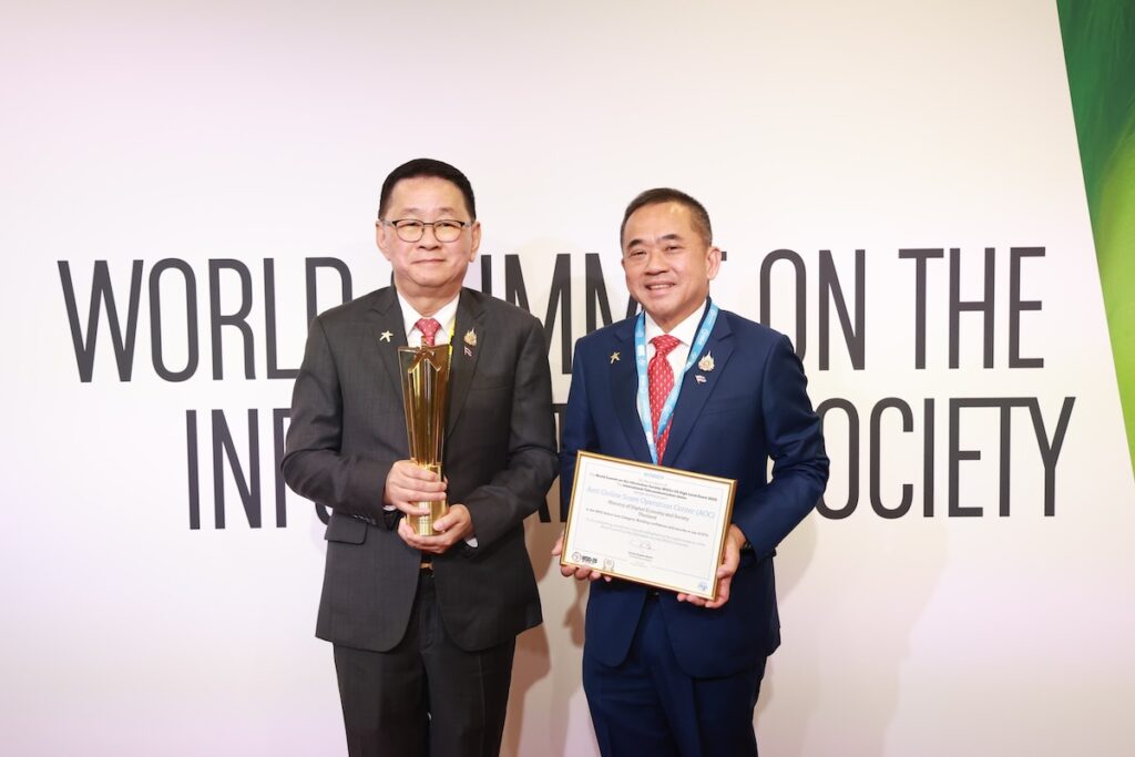 “การได้รับรางวัลชนะเลิศ “WSIS Prizes 2025” ครั้งนี้นับเป็นก้าวสำคัญของประเทศไทยบนเวทีนานาชาติ แสดงถึงศักยภาพของประเทศในการประยุกต์ใช้เทคโนโลยีดิจิทัลอย่างมีประสิทธิภาพและปลอดภัย เพื่อความมั่นคงของเศรษฐกิจและสังคมในยุคดิจิทัล รางวัลนี้เป็นกำลังใจสำคัญสำหรับเจ้าหน้าที่ทุกคนที่ปฏิบัติงานตลอด 24 ชั่วโมงเพื่อปกป้องประชาชนจากภัยคุกคามออนไลน์ เราจะเดินหน้าพัฒนาเทคโนโลยีและความร่วมมือระดับชาติและภูมิภาคอย่างต่อเนื่อง โดยมีเป้าหมายเพื่อการพัฒนาด้านดิจิทัลอย่างยั่งยืน” รองนายกฯ ประเสริฐ กล่าว