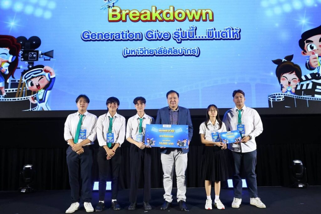 “ขอชื่นชมและแสดงความยินดีน้องๆ นักศึกษาทุกท่าน ที่เข้ามาเป็นส่วนหนึ่งกับโครงการประกวดภาพยนตร์สั้นในครั้งนี้ สะท้อนถึงการมองเห็นคุณค่าจากความสุขแห่งการให้ร่วมกันกับสำนักงานฯ และเชื่อว่าจะสามารถแปรเปลี่ยนพลังสร้างสรรค์นี้ถ่ายทอดให้กับคนในสังคม เพื่อเป็นการสร้างแรงบันดาลใจ นำไปสู่การปฏิบัติต่อไป”