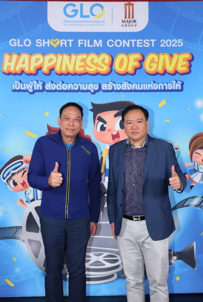 เมื่อวันที่ 8 กรกฎาคม 2568 เวลา 10.00 น. สำนักงานสลากกินแบ่งรัฐบาล (GLO) นำโดย พันโท หนุน ศันสนาคม ผู้อำนวยการสำนักงานสลากกินแบ่งรัฐบาล ร่วมกับ บริษัท เมเจอร์ ซีนีเพล็กซ์ กรุ้ป จำกัด (มหาชน) นำโดยสุรเชษฐ์ อัศวเรืองอนันต์ รองประธานเจ้าหน้าที่บริหารฝ่ายสื่อโฆษณา บริษัท เมเจอร์ ซีนีเพล็กซ์ กรุ้ป จำกัด (มหาชน) จัดพิธีประกาศผลและมอบรางวัล GLO SHORT FILM CONTEST 2025 ภายใต้แนวคิด “Happiness of Give–เป็นผู้ให้ ส่งต่อความสุข สร้างสังคมแห่งการให้” ณ โรงภาพยนตร์ SAMSUNG LED CINEMA @ SIAM PARAGON ชั้น 6 ศูนย์การค้าสยามพารากอน