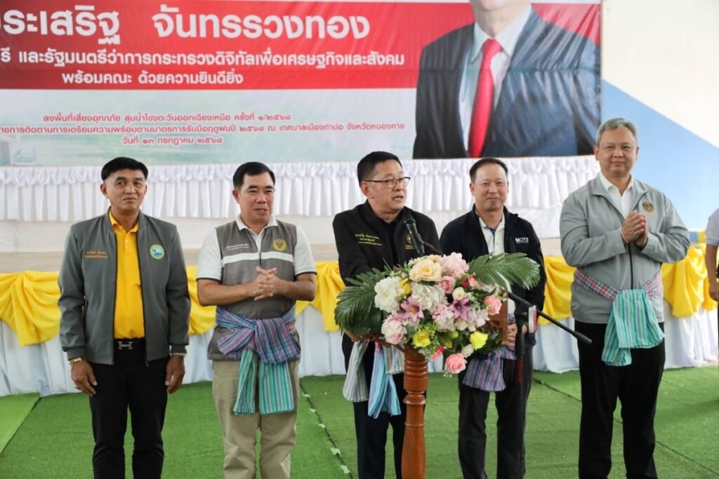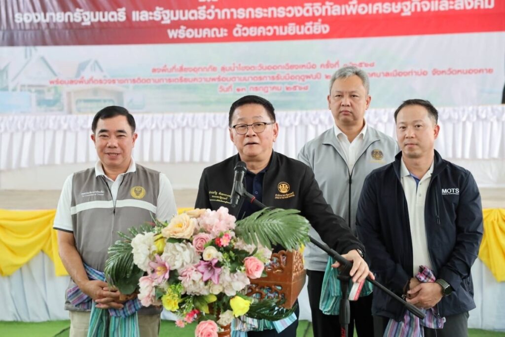 เมื่อวันที่ 13 กรกฎาคม 2568 ประเสริฐ จันทรรวงทอง รองนายกรัฐมนตรีและรัฐมนตรีว่าการกระทรวงดิจิทัลเพื่อเศรษฐกิจและสังคม(ดีอี)ในฐานะประธานกรรมการทรัพยากรน้ำแห่งชาติ (กนช.) ลงพื้นที่จังหวัดหนองคายเป็นประธานการประชุมเปิดศูนย์บริหารจัดการน้ำส่วนหน้า (ชั่วคราว) ในพื้นที่เสี่ยงอุทกภัย ลุ่มน้ำโขงตะวันออกเฉียงเหนือ ครั้งที่ 1/2568 พร้อมด้วย ดร.สุรสีห์ กิตติมณฑล เลขาธิการสำนักงานทรัพยากรน้ำแห่งชาติ (สทนช.) คณะผู้บริหารและเจ้าหน้าที่ สทนช. โดยมี สมภพ สมิตะสิริ ผู้ว่าราชการจังหวัดหนองคาย ผู้แทนจังหวัดสกลนคร จังหวัดมุกดาหาร จังหวัดนครพนม จังหวัดบึงกาฬ จังหวัดเลย จังหวัดอุดรธานี และผู้แทนหน่วยงานที่เกี่ยวข้องเข้าร่วมประชุม ณศาลากลางจังหวัดหนองคาย