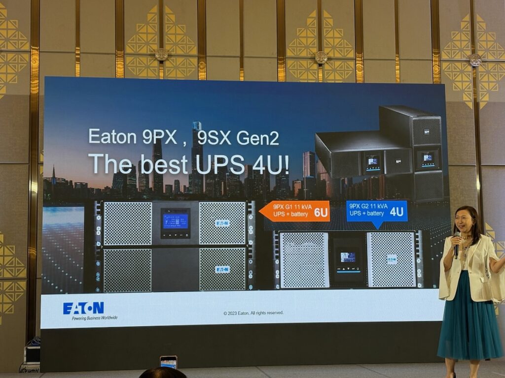 นางสาวสุภัทรา รามสูต ผู้จัดการประจำประเทศไทย บริษัท อีตั้น อิเล็คทริค (ประเทศไทย) จำกัด กล่าวถึงโปรดักดิ์ใหม่ที่เปิดตัวในวันนี้ว่าเครื่องสำรองไฟรุ่น Eaton 9PX และ 9SX Gen2 มีจุดเด่ดที่ประสิทธิภาพการแปลงพลังงานสูงสุดถึง 97.2% นับว่าเป็นระดับชั้นนำของอุตสาหกรรม ทั้งยังสามารถจ่ายพลังงานได้มากขึ้นถึง 11% เมื่อเทียบกับรุ่นก่อนหน้า และใช้พื้นที่ติดตั้งน้อยกว่าคู่แข่งถึง 33% สำหรับรุ่น 11kW ซึ่งมีขนาดเพียง 4U เท่านั้น