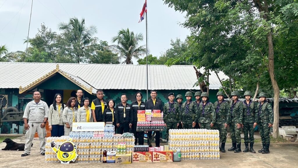 โดย NT ได้ส่งทีมผู้บริหารและพนักงาน พร้อมจัดเตรียมสิ่งของอุปโภคบริโภค ยารักษาโรค และน้ำดื่ม มอบให้กับเจ้าหน้าที่ฝ่ายความมั่นคงซึ่งรักษาความปลอดภัยตามแนวชายแดนไทย – กัมพูชา โดยมีวัตถุประสงค์เพื่อเสริมขวัญกำลังใจแก่กำลังพลผู้ปฏิบัติหน้าที่ปกป้องอธิปไตยของชาติอย่างเข้มแข็ง