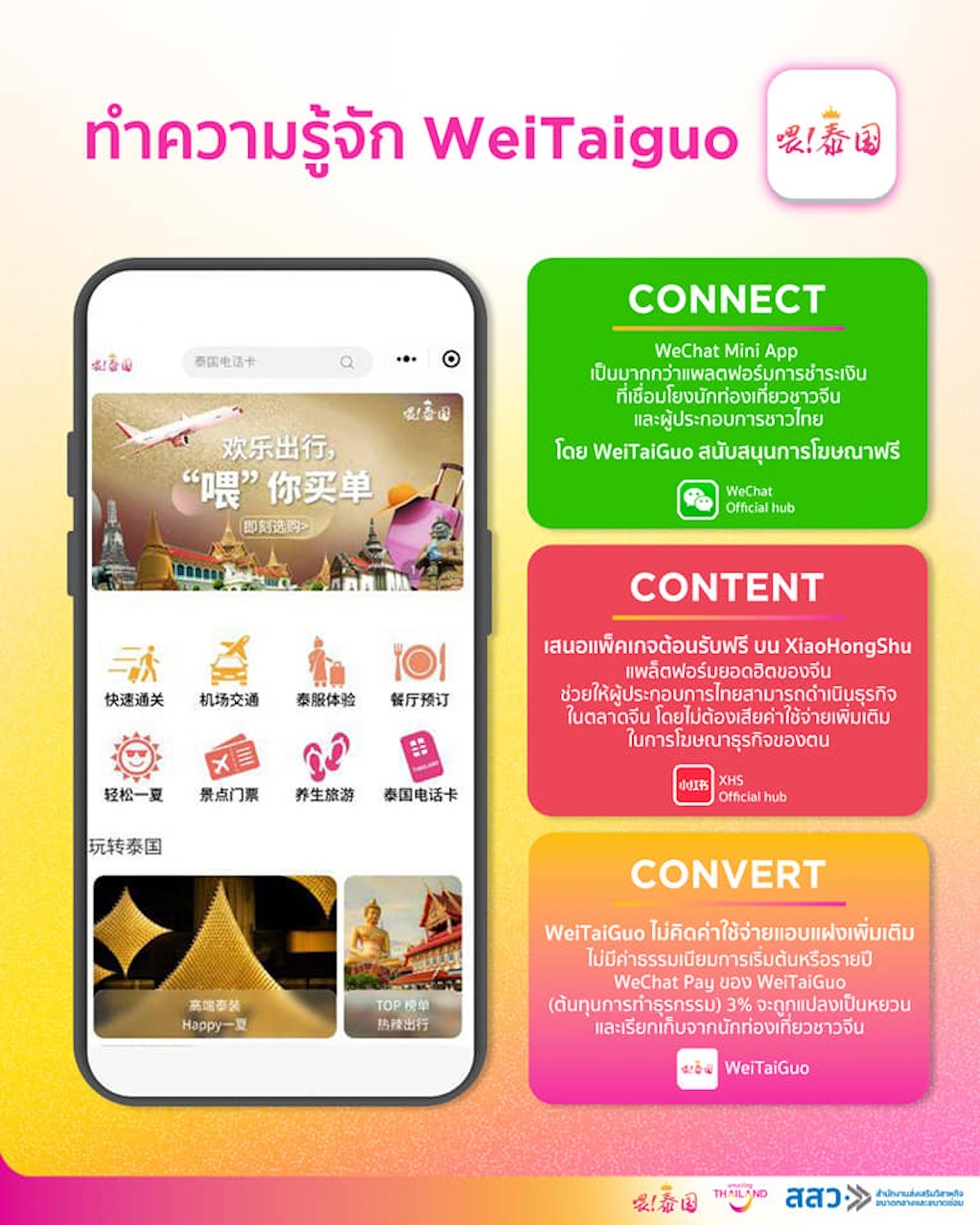 ทั้งนี้ไปรษณีย์ไทยได้ขยายบทบาท“พี่ไปรฯ”ให้กลายเป็นLocal Influencer ลงพื้นที่จริง เพื่อรวบรวมข้อมูลร้านอาหารที่โดดเด่นในแต่ละท้องถิ่น พร้อมคัดเลือกและปักหมุดบนแพลตฟอร์ม “เหวย ไท่ กว๋อ” ที่มีผู้ใช้งานชาวจีนจำนวนมากและสามารถเดินทางเข้ามาเที่ยวที่ประเทศไทย โดยคาดว่าจะสร้างการมองเห็นร้านอาหารที่เข้าร่วมได้ไม่ต่ำกว่า 1.36 พันล้านครั้งบนแพลตฟอร์มภายในสิ้นปีนี้