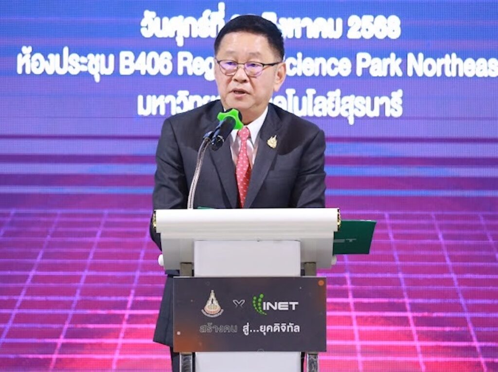เมื่อวันที่ 22 สิงหาคม 2568 ประเสริฐ จันทรรวงทอง รองนายกรัฐมนตรีและรัฐมนตรีว่าการกระทรวงดิจิทัลเพื่อเศรษฐกิจและสังคม (ดีอี) กล่าวในการร่วมเป็นสักขีพยานในพิธีบันทึกข้อตกลงความร่วมมือทางวิชาการระหว่างมหาวิทยาลัยเทคโนโลยีสุรนารี (มทส.) และบริษัท อินเทอร์เน็ตประเทศไทย จำกัด (มหาชน) ณ มหาวิทยาลัยเทคโนโลยีสุรนารี จังหวัดนครราชสีมา ว่าพิธีบันทึกข้อตกลงความร่วมมือในครั้งนี้นับเป็นจุดเริ่มต้นสำคัญของการเสริมสร้างความร่วมมือด้านวิชาการและเทคโนโลยี เพื่อพัฒนากำลังคนดิจิทัลและขับเคลื่อนประเทศไทยสู่เศรษฐกิจและสังคมดิจิทัลอย่างมั่นคงและยั่งยืน