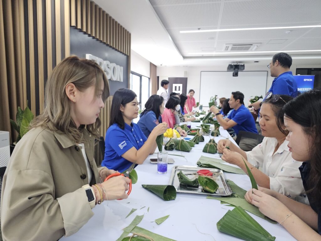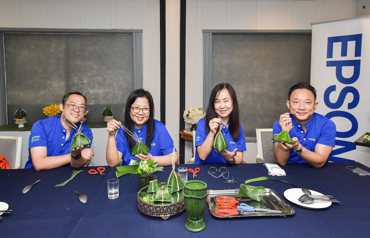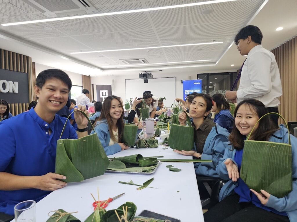 ทีมผู้บริหารเอปสัน ประเทศไทย ได้แก่ ยรรยง มุนีมงคลทร ผู้อำนวยการบริหาร ,ปวีณา ศรีตระกูล หัวหน้าฝ่ายบริหารผลิตภัณฑ์และการตลาด และวิสาข์ ธนวิภาคย์ ผู้จัดการอาวุโสฝ่ายแบรนด์และสื่อสารองค์กร นำสื่อมวลชนและพนักงานร่วมกิจกรรม โดยได้รับเกียรติจากอาจารย์ขจร อิศราสุชีพ อาจารย์ประจำสาขา วิชาคหกรรมศาสตร์ประยุกต์ คณะเทคโนโลยีคหกรรมศาสตร์ มหาวิทยาลัยเทคโนโลยีราชมงคลพระนคร มาร่วมถ่ายทอดความรู้และสอนเทคนิคการพับใบตอง