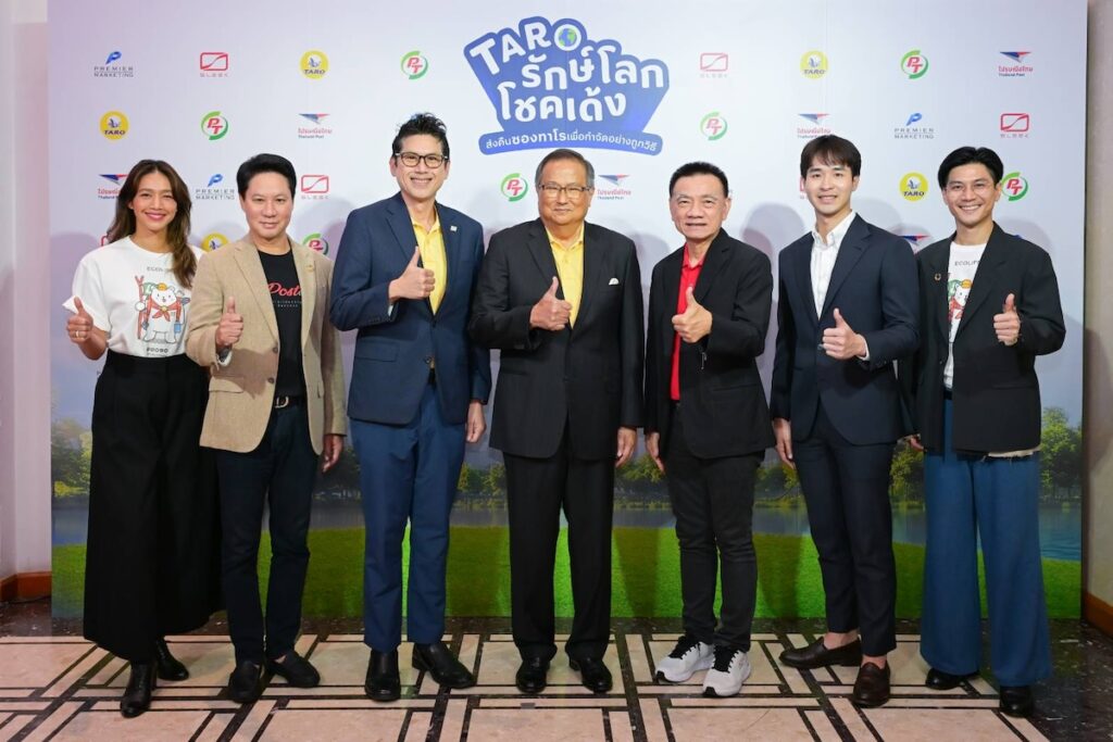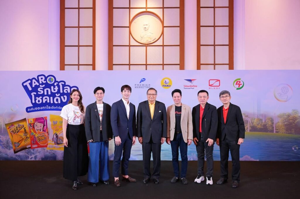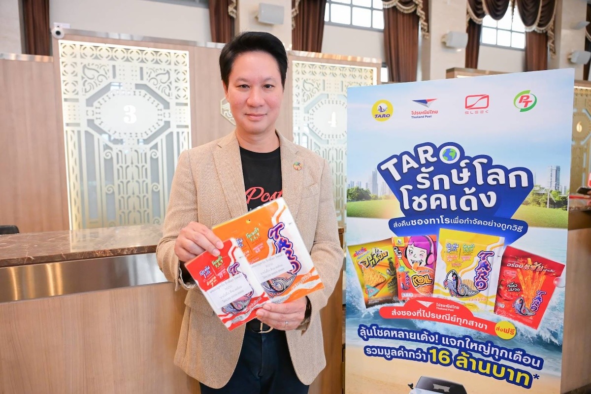 ไปรษณีย์ไทยร่วมกับ บริษัท พรีเมียร์ มาร์เก็ตติ้ง จำกัด (มหาชน) ผู้ผลิตและจัดจำหน่ายขนมขบเคี้ยวปลาสวรรค์ทาโรและ บริษัท พีทีจี เอ็นเนอยี จำกัด (มหาชน) บริษัท สลีค อีวี จำกัด เปิดตัวแคมเปญ “ทาโรรักษ์โลก โชคเด้ง” ชวนคนไทยร่วมส่งคืนซองเปล่าทาโรที่ไปรษณีย์ทุกแห่งทั่วประเทศ เพื่อกำจัดอย่างถูกวิธี เข้าสู่กระบวนการรีไซเคิล นำไปแปรรูปเป็นเชื้อเพลิงผลิตพลังงานไฟฟ้าทดแทนอุตสาหกรรมการใช้ถ่านหินพร้อมสิทธิ์ลุ้นรางวัลรวมมูลค่ากว่า 16 ล้านบาท ตั้งแต่วันที่ 1 กันยายน 2568 – 31 มกราคม 2569