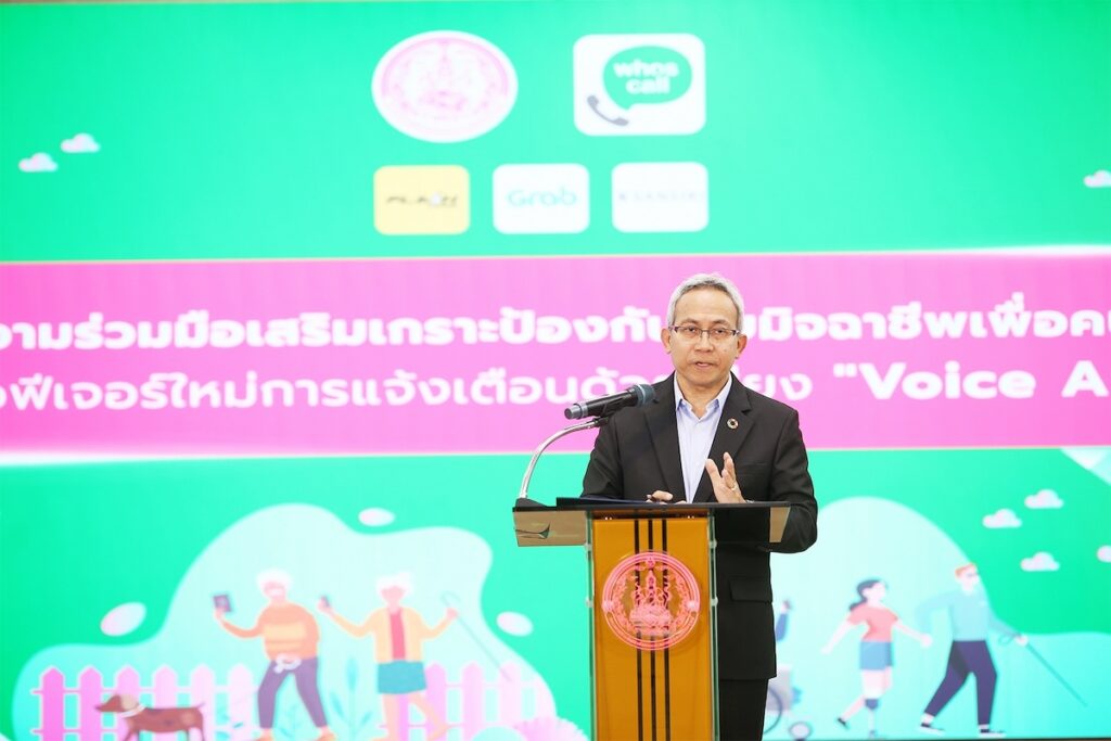 บริษัท โกโกลุก (ประเทศไทย) ผู้ให้บริการแอปพลิเคชัน Whoscall และผู้นำด้านเทคโนโลยีเพื่อความเชื่อมั่น (TrustTech) ร่วมมือกับกระทรวงการพัฒนาสังคมและความมั่นคงของมนุษย์ (พม.)เพื่อยกระดับการปกป้องคนไทยจากภัยมิจฉาชีพ โดยมีเป้าหมายให้ประชาชนทุกกลุ่มสามารถเข้าถึงเครื่องมือด้านความปลอดภัยทางไซเบอร์ได้อย่างเท่าเทียม ภายใต้ความร่วมระหว่างกันในครั้งนี้ ได้นำเสนอฟีเจอร์ ‘การแจ้งเตือนด้วยเสียง (Voice Alert) ด้วยเสียงของ ‘พี่หนุ่ม กรรชัย’ พร้อมมอบโค้ด Whoscall พรีเมียมใช้งานฟรีเป็นระยะเวลา 365 วัน จำนวน 2,000,000 โค้ดให้กับกระทรวงพม. เพื่อนำไปจัดสรรให้แก่กลุ่มเป้าหมายในความดูแล อาทิ ผู้สูงอายุ คนพิการ และเจ้าหน้าที่ผู้ปฏิบัติงานในพื้นที่ทั่วประเทศ