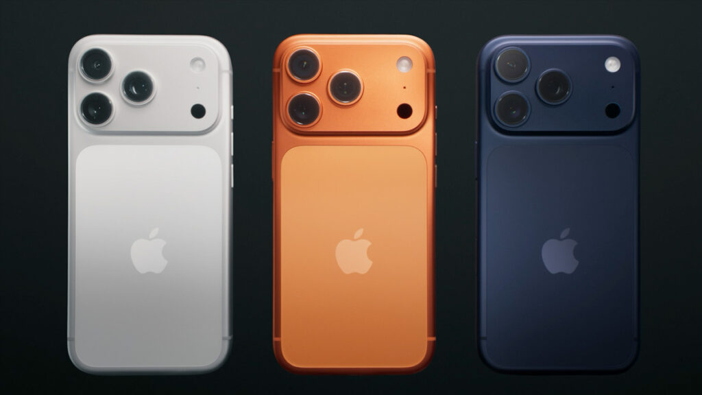 ปิดท้ายกันที่ iPhone 17 Pro และ 17 Pro Max รอบนี้กลายเป็นโดดเด่นในเรื่องของสีสันอย่างสีส้มคอสมิก ที่มาคู่กับสีน้ำเงินเข้ม และสีเงิน กลายเป็นไม่มีตัวเลือกสีดำให้เลือกในปีนี้กันไป พร้อมกลับไปใช้วัสดุเป็นอะลูมิเนียมแบบ Unibody แทน โดยยกเหตุผลในเรื่องของการระบายความร้อนได้ดีกว่าไทเทเนียม มาทำให้ให้คนที่ใช้รุ่น Pro ไม่รู้สึกว่าโดนลดเกรดของวัสดุที่ใช้งาน