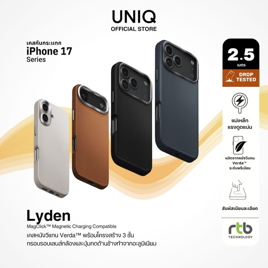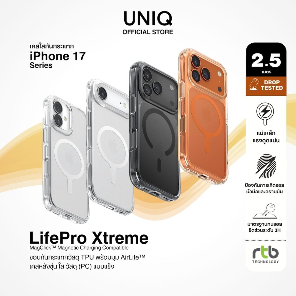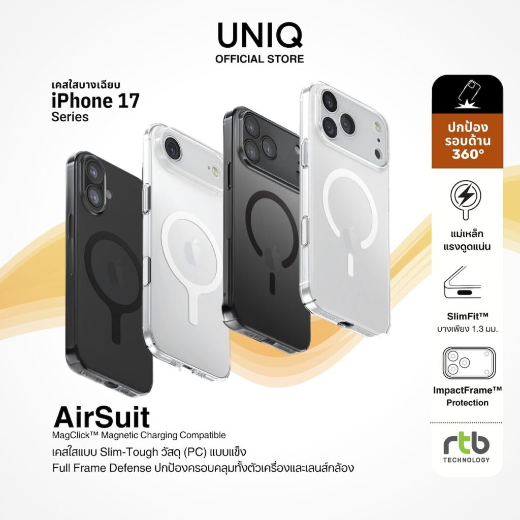 ภายใต้ปรัชญา “We make life better by design” UNIQ มุ่งมั่นสร้างสรรค์ผลิตภัณฑ์ที่ผสานดีไซน์อันโดดเด่นเข้ากับฟังก์ชันการใช้งาน เพื่อยกระดับประสบการณ์การใช้สมาร์ทโฟนในทุกวัน โดยพิสูจน์ความสำเร็จในไทยมากว่า 13 ปี ตั้งแต่ยุค iPhone 4 โดยเคสสำหรับ iPhone 17 ทุกรุ่นได้รับการออกแบบมาอย่างพิถีพิถัน เพื่อมอบการปกป้องรอบด้านแบบ 360 องศา และรองรับการชาร์จไร้สายผ่านวงแหวนแม่เหล็ก MagClick™ อันทรงพลัง
