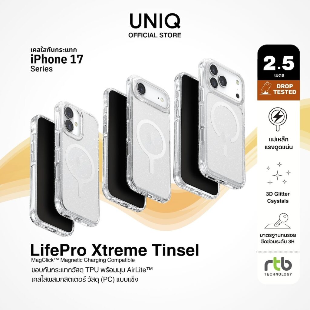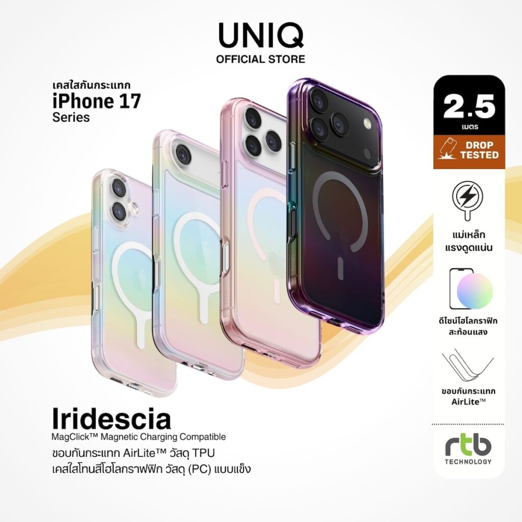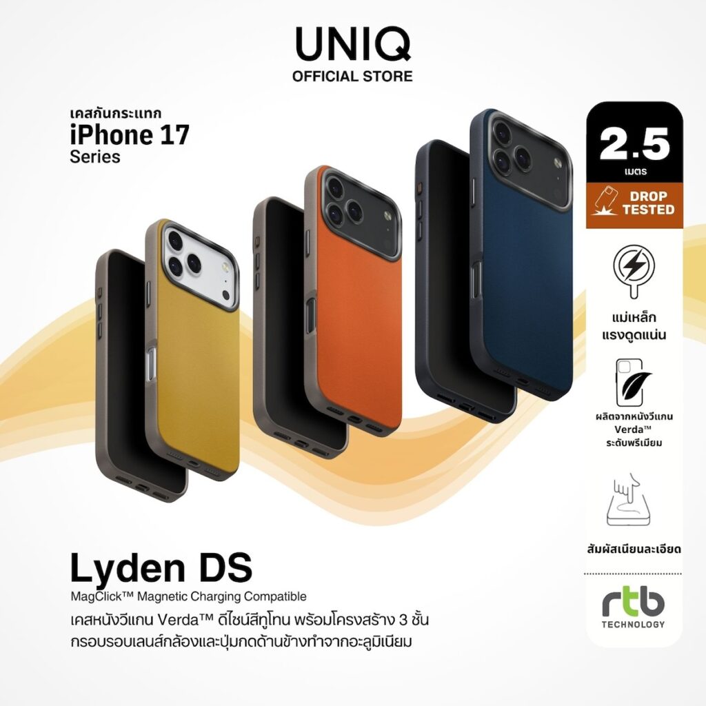 ภายใต้ปรัชญา “We make life better by design” UNIQ มุ่งมั่นสร้างสรรค์ผลิตภัณฑ์ที่ผสานดีไซน์อันโดดเด่นเข้ากับฟังก์ชันการใช้งาน เพื่อยกระดับประสบการณ์การใช้สมาร์ทโฟนในทุกวัน โดยพิสูจน์ความสำเร็จในไทยมากว่า 13 ปี ตั้งแต่ยุค iPhone 4 โดยเคสสำหรับ iPhone 17 ทุกรุ่นได้รับการออกแบบมาอย่างพิถีพิถัน เพื่อมอบการปกป้องรอบด้านแบบ 360 องศา และรองรับการชาร์จไร้สายผ่านวงแหวนแม่เหล็ก MagClick™ อันทรงพลัง