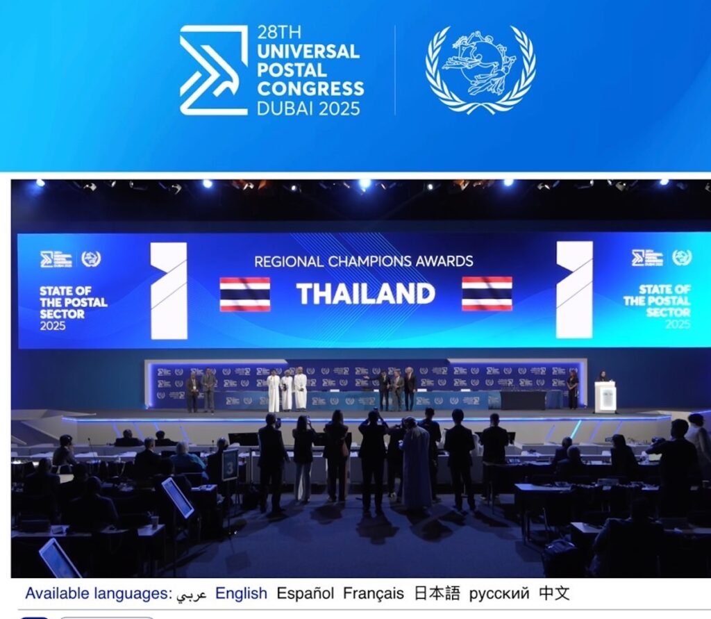 ไปรษณีย์ไทย ตอกย้ำบทบาทผู้นำด้านการไปรษณีย์ในระดับโลกหลังได้รับเลือกตั้งให้ดำรงตำแหน่ง สมาชิกสภาบริหาร (Council of Administration : CA) และ สมาชิกสภาปฏิบัติการไปรษณีย์ (Postal Operations Council : POC) จากกลุ่มประเทศภูมิภาค Southern Asia and Oceania ระหว่างการประชุมใหญ่สหภาพสากลไปรษณีย์ สมัยที่ 28 พร้อมคว้า 2 รางวัลระดับนานาชาติ ได้แก่ รางวัลชนะเลิศด้านการพัฒนาไปรษณีย์ในภูมิภาคเอเชียแปซิฟิก และใบรับรองระดับเหรียญทองด้านการจัดการภัยพิบัติและโรคระบาด ซึ่งเน้นศักยภาพของประเทศไทยในฐานะผู้นำการพัฒนาและยกระดับมาตรฐานไปรษณีย์ในเวทีโลกอย่างแท้จริง ซึ่งจัดขึ้นระหว่างวันที่ 8 – 19 กันยายน 2568 ณ นครดูไบ สหรัฐอาหรับเอมิเรตส์