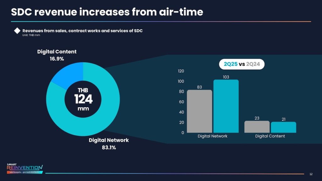 สายธุรกิจ Digital Communications หรือ “SDC” ครึ่งปีแรกแล้วมีกำไรถึง 33 ล้านบาท จากค่า Air Time ในโครงข่ายวิทยุคมนาคมระบบดิจิตอล หรือ Digital Trunked Radio System ของโครงการจัดหาระบบวิทยุสื่อสารข่ายบังคับบัญชากระทรวงมหาดไทย (MOI) และจะสร้างรายได้และกำไรต่อเนื่องตลอดปีนี้