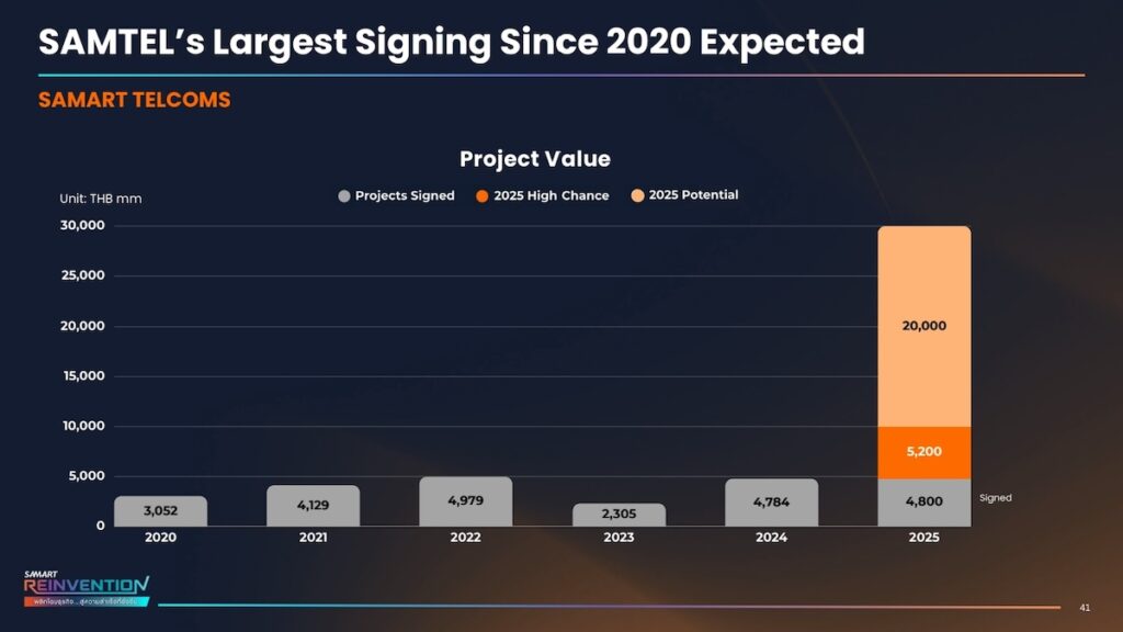 SAMTEL มีการเซ็นสัญญาโครงการใหม่มูลค่ากว่า 5,000 ล้านบาท อาทิ โครงการจ้างจัดหา พัฒนา ติดตั้ง และดูแลบำรุงรักษาระบบสาธารณูปโภคด้านไฟฟ้า (Utility Platform UTP) ของการไฟฟ้าส่วนภูมิภาค(กฟภ.) ปัจจุบันมี Backlog รวมกว่า 8,000 ล้านบาท