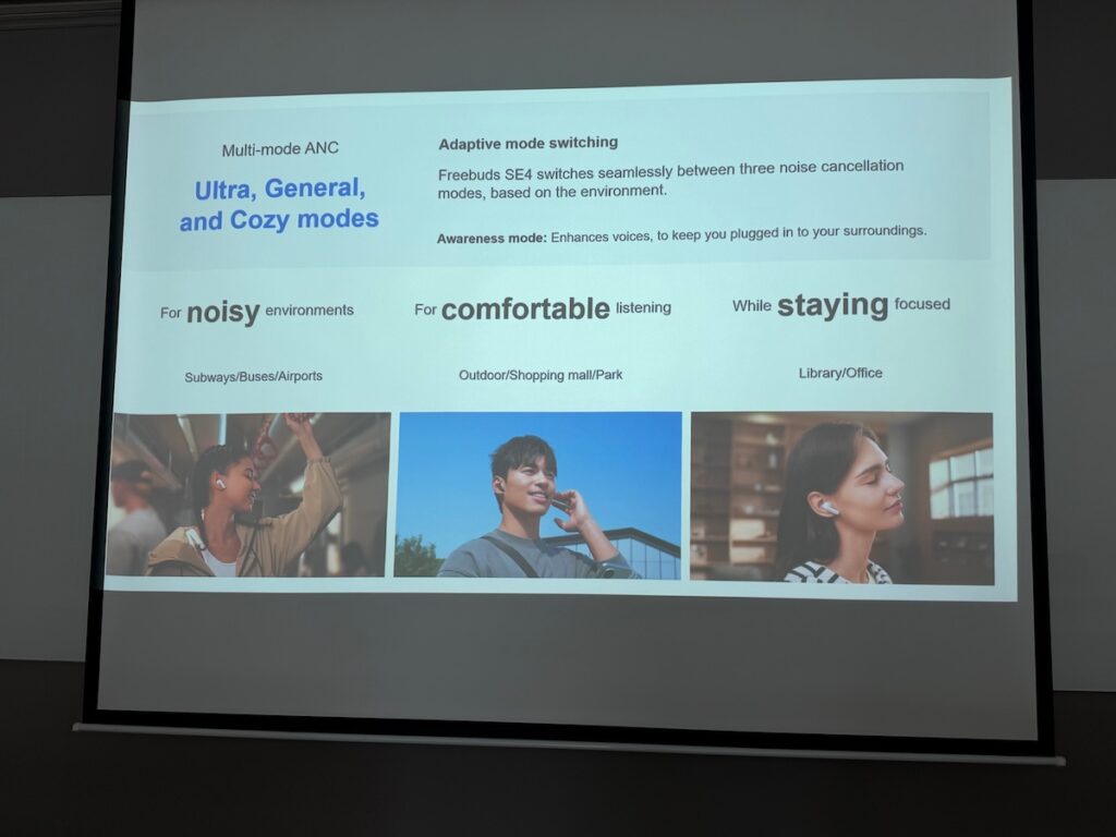 HUAWEI FreeBuds SE 4 ANC ออกแบบมาเพื่อมอบประสบการณ์เสียงระดับแฟลกชิป ด้วยเทคโนโลยีตัดเสียงรบกวนแบบแอคทีฟ (ANC) ที่ทรงพลัง ลดเสียงรบกวนได้สูงสุดถึง 50 เดซิเบล พร้อมโหมดให้เลือกถึง 3 โหมดทั้ง Ultra, General และ Cozy ไม่ว่าจะอยู่ในสภาพแวดล้อมแบบไหน ก็สามารถเลือกโหมดที่เหมาะสมเพื่อโฟกัสกับเสียงเพลง พอดแคสต์ หรือการสนทนาได้อย่างไร้กังวล