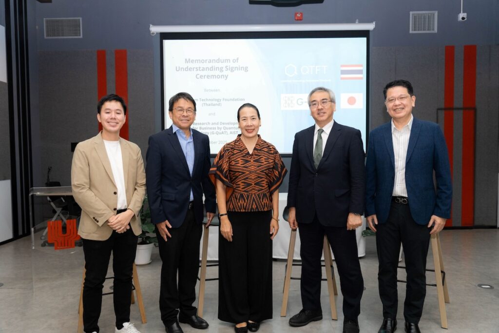 ดร.จิรวัฒน์ ตั้งปณิธานนท์ ประธานเจ้าหน้าที่บริหารและผู้ร่วมก่อตั้ง บริษัท Quantum Technology Foundation (Thailand) Co., Ltd. (QTFT) (ซ้าย) และ ศาสตราจารย์ มาซุ คาซูยะ ผู้อำนวยการศูนย์ G-QuAT สถาบันเทคโนโลยีอุตสาหกรรมขั้นสูงแห่งชาติ (AIST) ประเทศญี่ปุ่น (ขวา) ได้ลงนามในบันทึกความเข้าใจ (MOU) เพื่อร่วมกันพัฒนาเทคโนโลยี Quantum Computing สู่การใช้งานในภาคอุตสาหกรรมจริง โดยมีบริษัท ยิบอินซอย ทำหน้าที่เป็นตัวกลางสำคัญในการประสานความร่วมมือระหว่างภาคเทคโนโลยี ภาคการเงิน และภาครัฐ เพื่อให้ประเทศไทยสามารถนำควอนตัมคอมพิวติ้งเข้าสู่ระบบเศรษฐกิจได้อย่างเป็นรูปธรรม