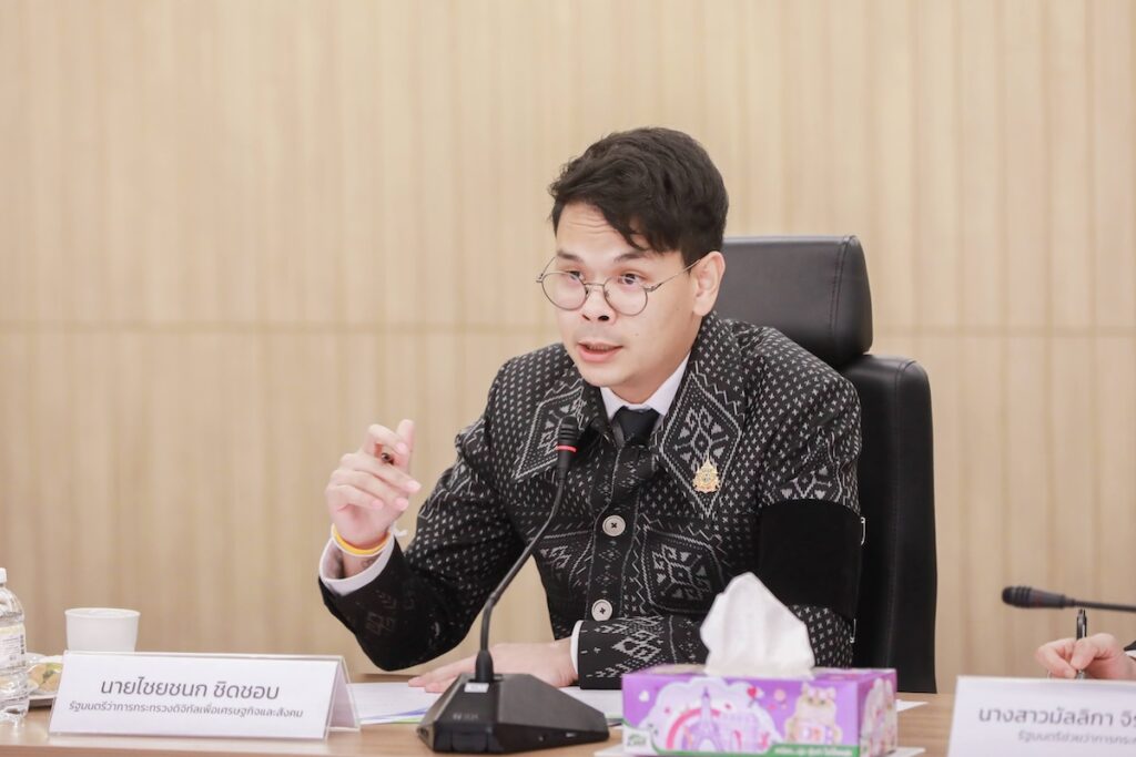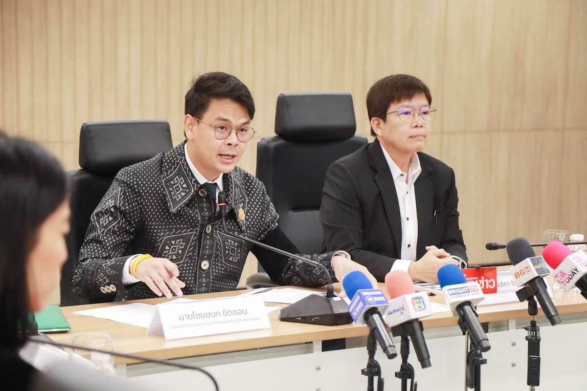 ไชยชนก ชิดชอบ รัฐมนตรีว่าการกระทรวงดิจิทัลเพื่อเศรษฐกิจและสังคม (ดีอี) เป็นประธานการแถลงข่าวความคืบหน้ามาตรการบรรเทาผลกระทบให้แก่กลุ่มผู้ขับขี่รถรับจ้างผ่านแอปพลิเคชัน พร้อมด้วยมัลลิกา จิระพันธุ์วาณิช รัฐมนตรีช่วยว่าการกระทรวงคมนาคม และหน่วยงานที่เกี่ยวข้อง