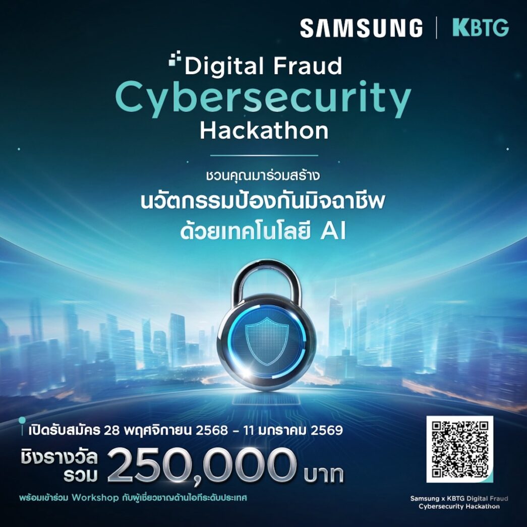ซัมซุง ผู้นำเทคโนโลยีและนวัตกรรมระดับโลก และ KBTG ผู้นำด้านนวัตกรรมทางการเงิน ประกาศความร่วมมือครั้งสำคัญ จัดการแข่งขันโครงการ “Samsung × KBTG Digital Fraud Cybersecurity Hackathon” เฟ้นหานวัตกรรมป้องกันมิจฉาชีพด้วยเทคโนโลยี AI ครั้งแรกในประเทศไทย ชวนนักพัฒนา สตาร์ทอัป นักศึกษา และผู้เชี่ยวชาญด้านไซเบอร์ซีเคียวริตี้ร่วมสร้างโซลูชันเพื่อป้องกัน Digital Fraud และเสริมความเชื่อมั่นให้กับผู้ใช้ในยุคดิจิทัล ชิงรางวัลรวมกว่า 250,000 บาท